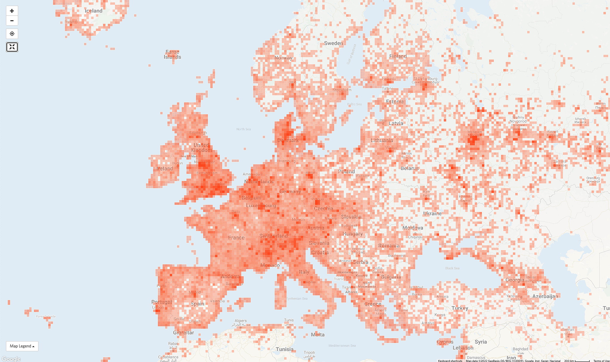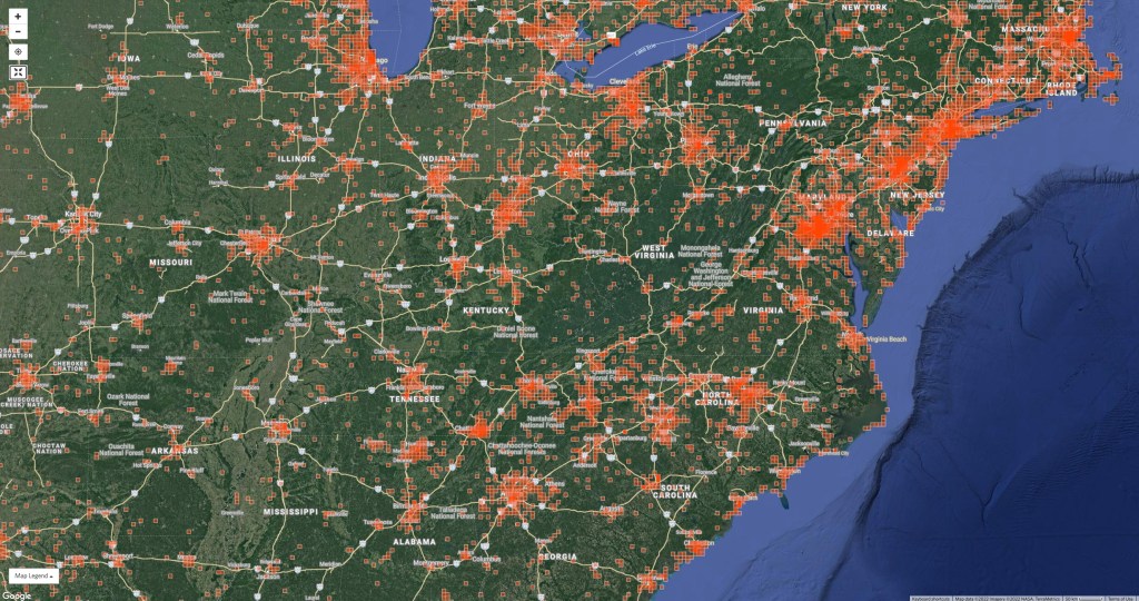 Due to the cost of transportation in fuel and time most people make citizen science observations close to where they live. This means that such observations are nearly coincident with centers of population. One can see this with any iNaturalist or eBird plot.