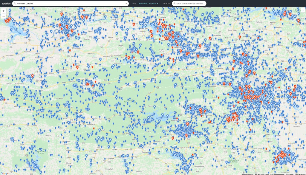 Precise observations of birds can lead to observational biases that favor the increased observation of rare birds. Most eBird participants know that when a rare bird is sighted near them, an alert is posted. This encourages other birders to try to see the bird. The result is a clustering of observations about the same bird – or group of birds – at a particular location. This draws potential observers away from sampling other places where the birds might have been. Of course, this only works when the bird or birds are relatively stationary for many days, such as those that come to a particular lake, mud flat or feeder.