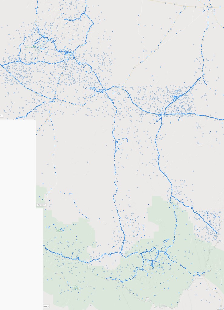 A fundamental sampling issue with eBird, iNaturalist or other nature-observation activities is that these observations are usually made by people who travel to see nature. Such individuals don’t want to spend their time and money traveling to locations not known for interesting aspects of the natural world. Birders don’t usually choose to visit “non-birdy” areas. They prefer parks and nature reserves know for the variety of birds and the ease of seeing them. Nature reserves, parks and wildlife refuges usually have some basic facilities like trails, boardwalks or possibly visitor centers. Camping or hotel facilities are often nearby, especially near State or National Parks. Having trails or roads that access nature is important.