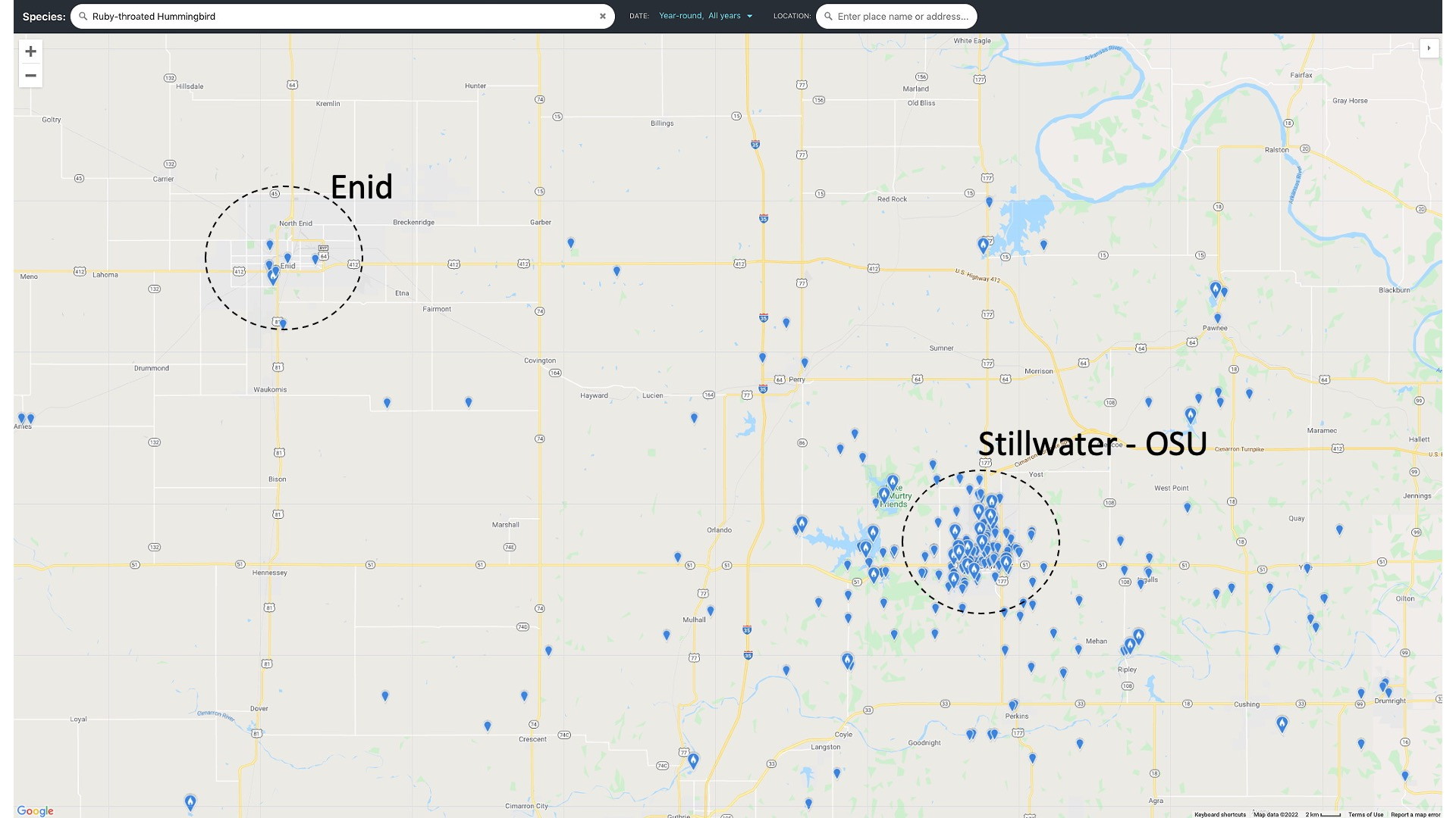 Observations can have many types of errors, though some are becoming less common as technology advances. Old observations (prior to GPS) often had erroneous positions that could be quite large. Really old observations are practically useless for mapping a species’ range with positions like “Texas, west of the Pecos” or “in New Spain”. New observations, made with cell phones that have GPS, can be accurate to within a few meters. This high accuracy can be disadvantageous for rare species that are fixed in place like plants. If the position is made public unscrupulous plant collectors may travel to the site to collect them.