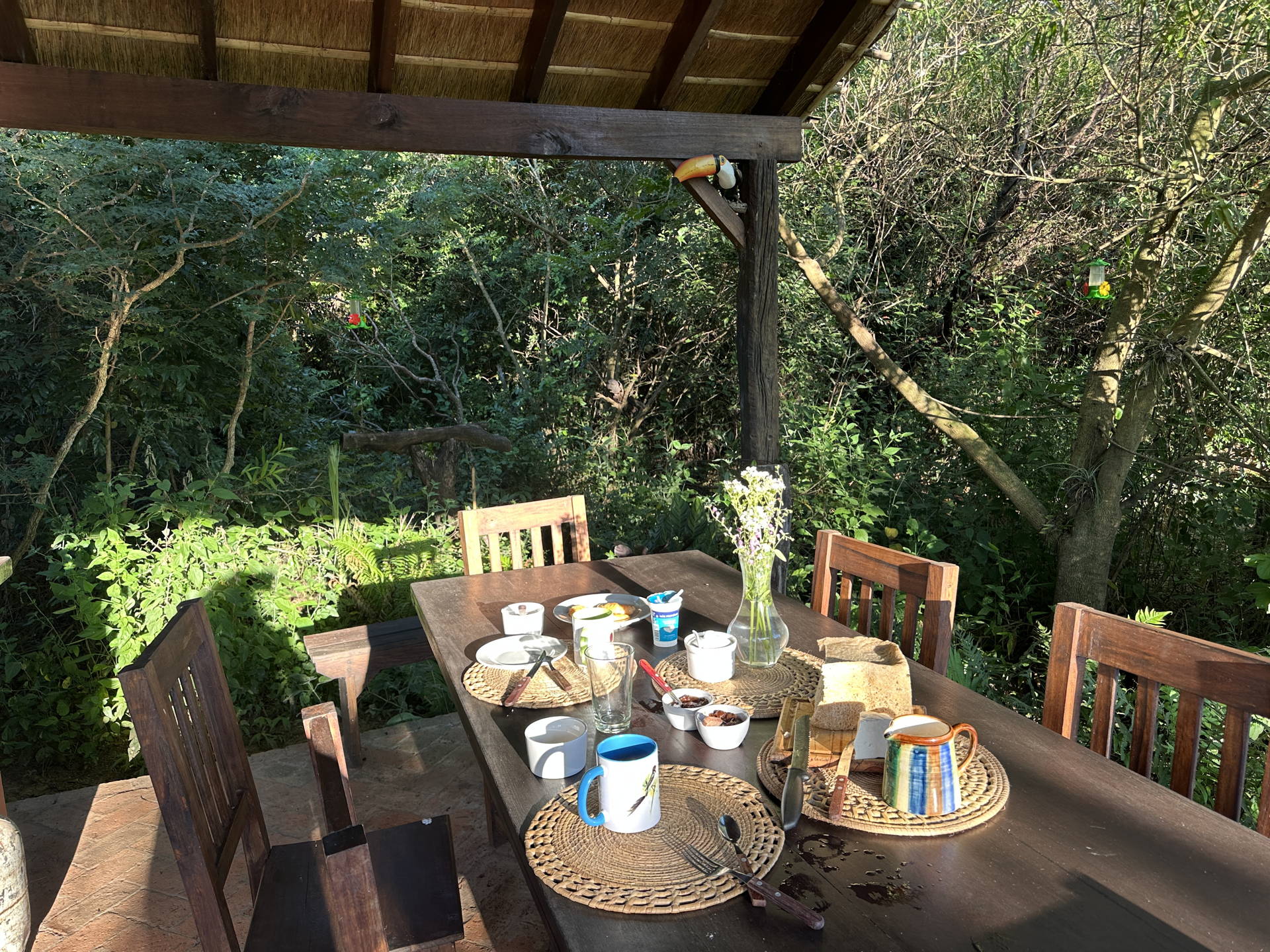 Our first night we stayed at a birding lodge – with only one apartment, which only had a caretaker when we were there. He showed us around the small property and trails and prepared breakfast the morning we left. The main drawback to this place was its proximity to a highway – and we heard traffic until it died down in the evening. We suspect they didn’t have an option in the site selection for the lodge, and it is new – imagery from 5 years ago don’t show it.