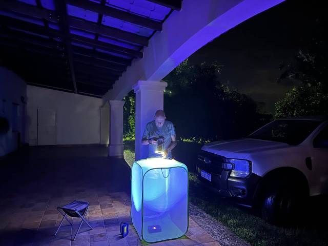 Unfortunately, a major storm developed during the early evening and we lost power for something like 3 hours. This inconvenienced many guests, and it became warm in the rooms without air conditioning, but were were mostly on the large porch looking at insects that came to our battery-powered UV lights. This attracted some attention, but mostly curiosity.