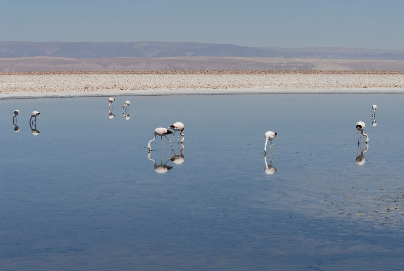 Flamingos are often abundant in the salares. There are two species that are common. This is near San Pedro de Atacama. A relatively low salar at only about 8000 ft elevation – most are 12,000-14000 ft.