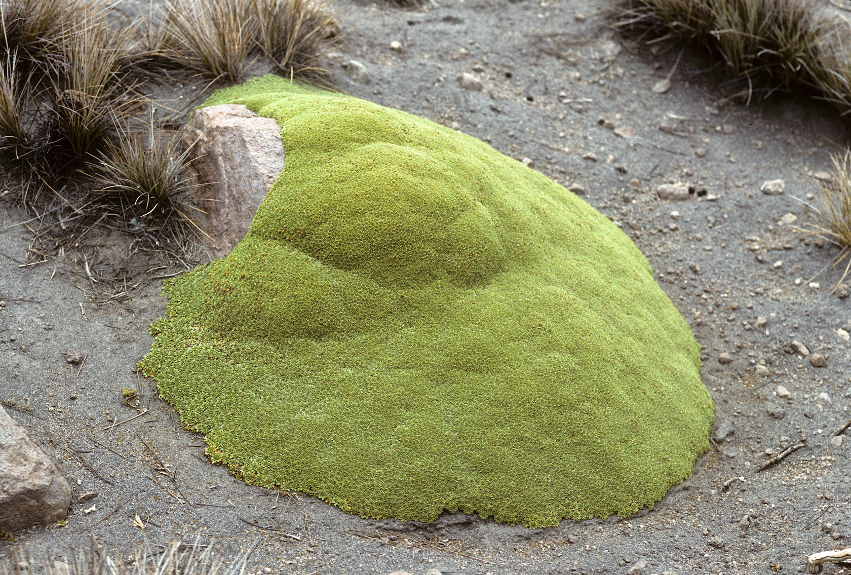 Yareta (Azorella compacta) are high-altitude plants of the Umbelliferae family that grow into a hard mound. The yellow flowers are very small. They can be hundreds of years old – or more.