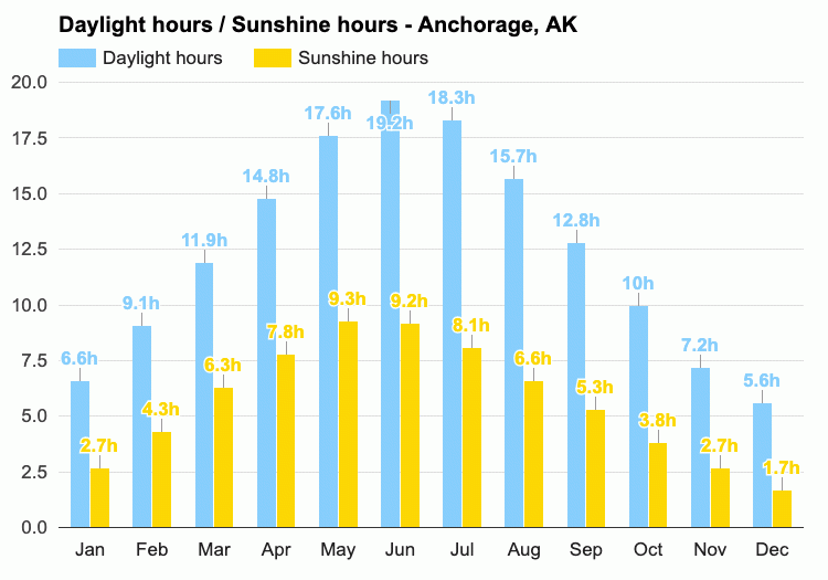 One can find the sunrise and sunset times, plus the twilight times at many sites via the internet. One good one is here and another more complex one is here. This site is even better at visualizing the position and elevation of the sun throughout the day – if you take the time to learn it (about 5 minutes). The link takes you to the sun position at noon at Anchorage on July 3 2020 but you can change this to any date and location worldwide).
