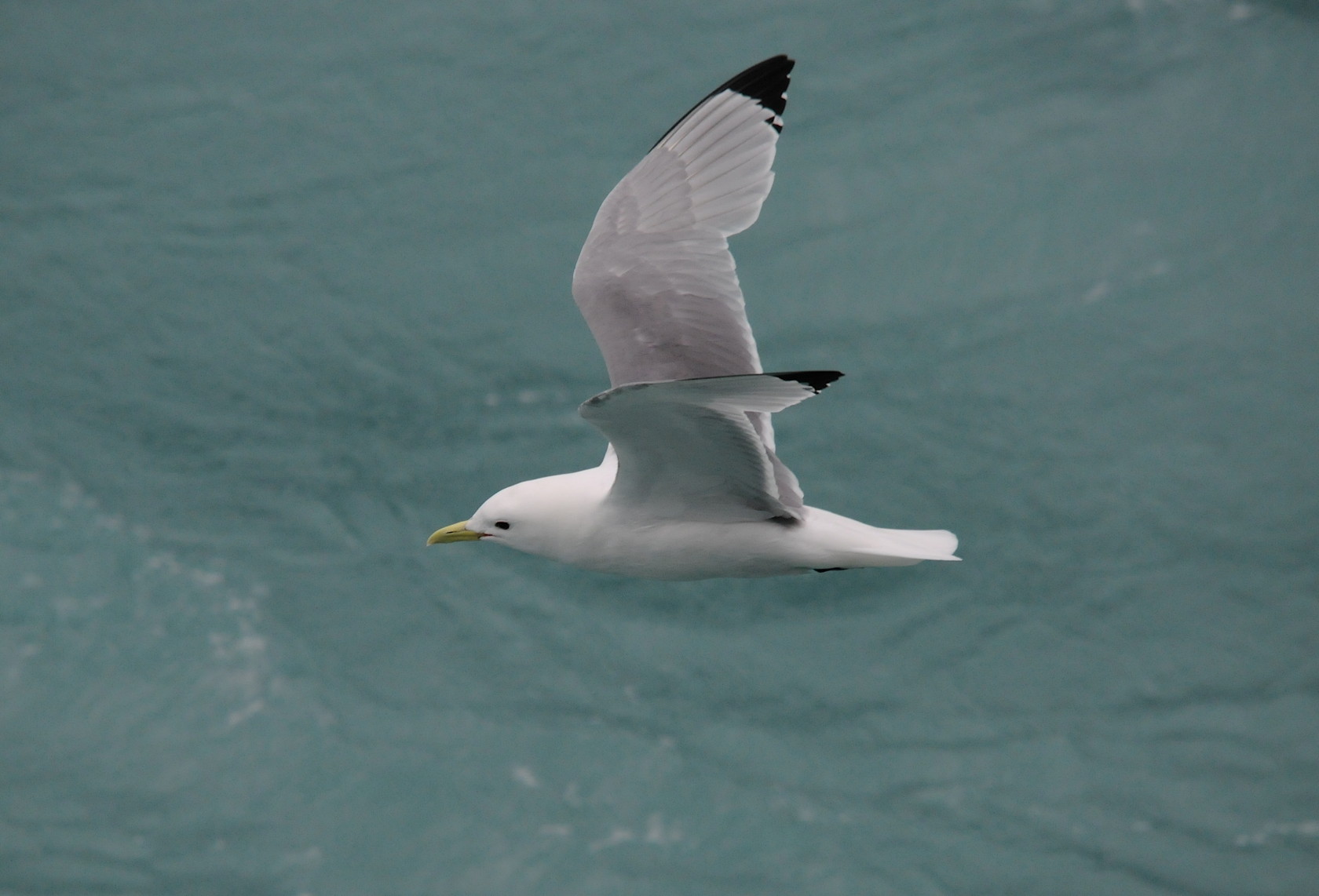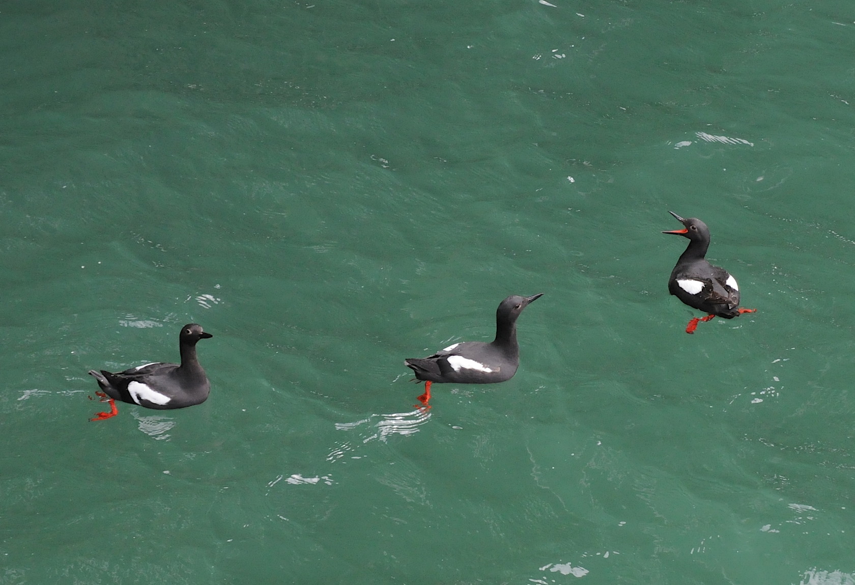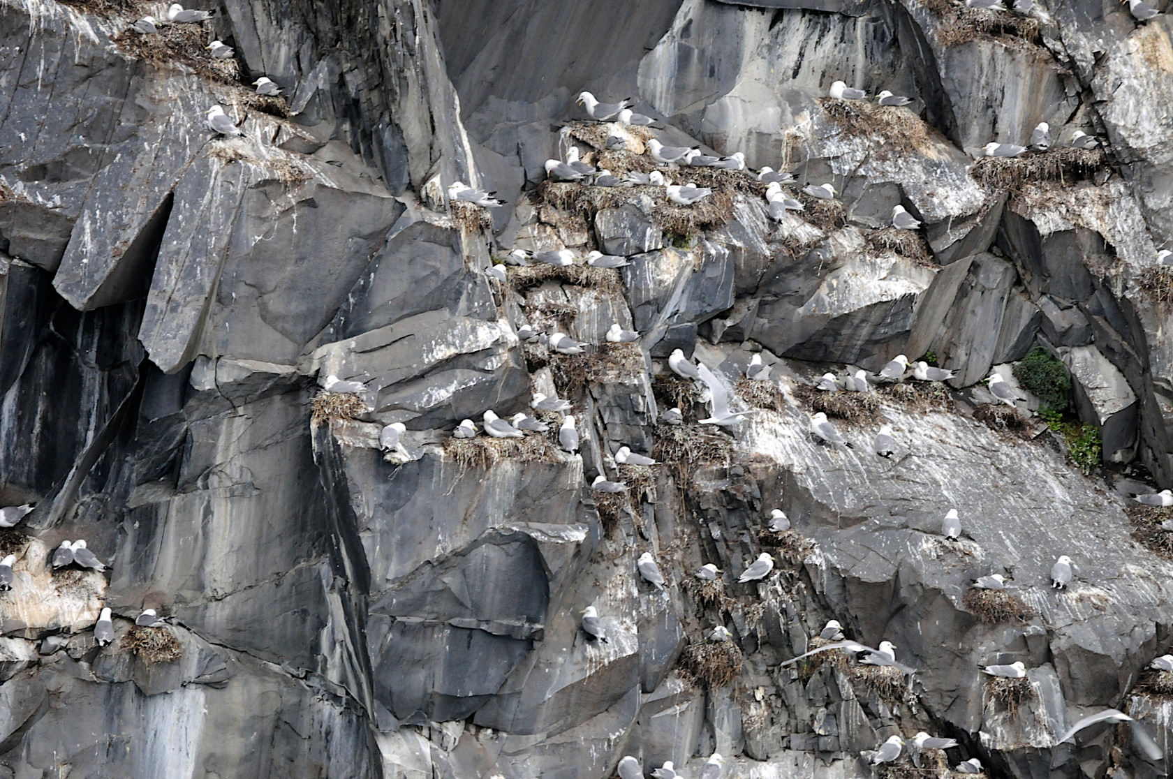 We took a larger boat to see the glaciers because they 1) were less expensive and slightly more comfortable and 2) would be easier to photograph some subjects, being higher off the water. We did not expect to see much wildlife, thought we did see some interesting Kittiwakes on the cliffs on return to Whittier.