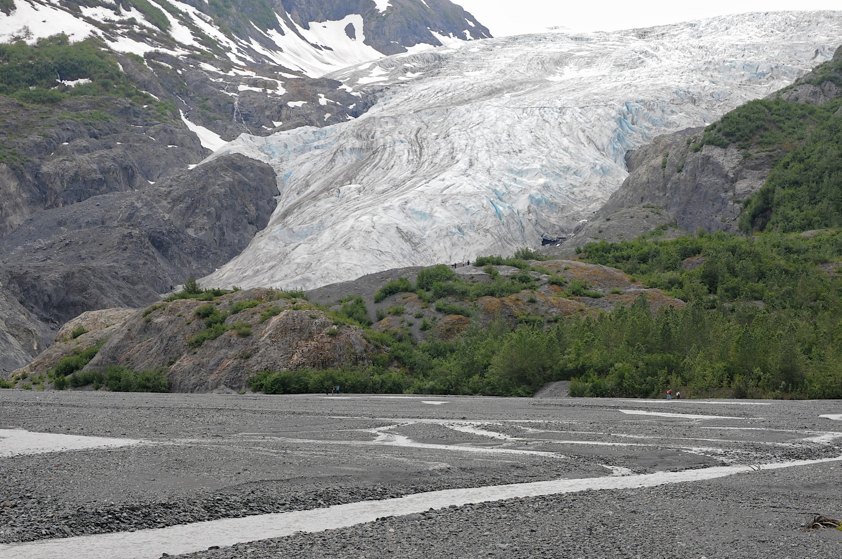In the Seward area you should visit the Exit Glacier. This small glacier can be approached on foot via a trail. There are summer nature walks by National Park rangers here (this is just inside the Kenai Fjords National Park). The ranger-led walk we took was very informative and we recommend taking one if you can. Otherwise the trails here are in excellent condition and accessing the glacier is straightforward. The glacier has been receding over the past few centuries and there are markers indicating where the glacier’s terminus was located in past years. The forest recovery is interesting. You cannot walk on the glacier, as it is dangerous to do so here.