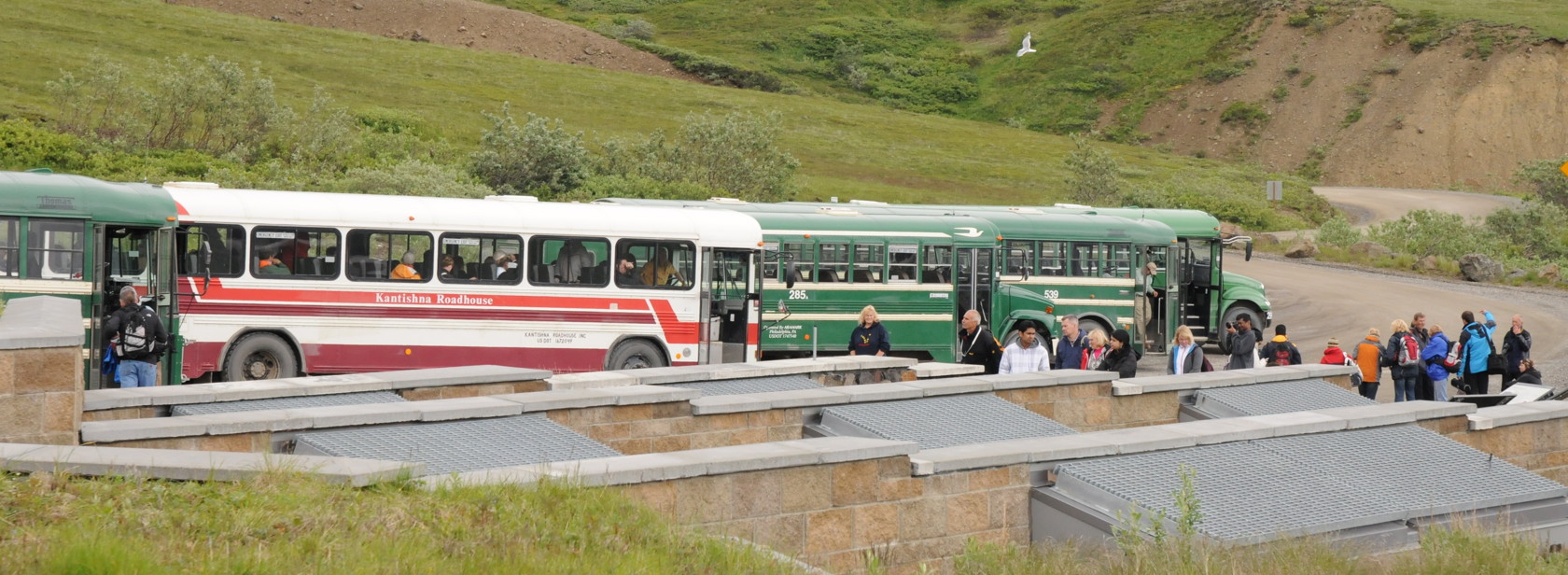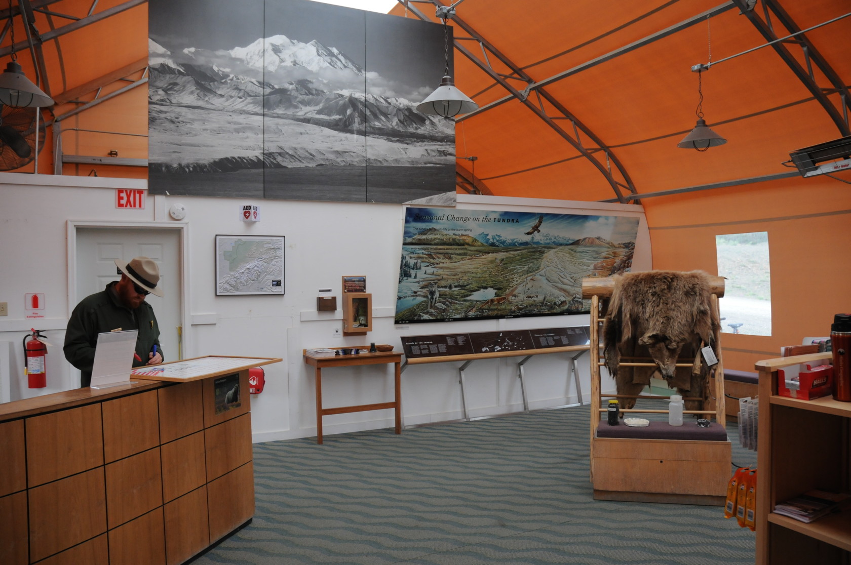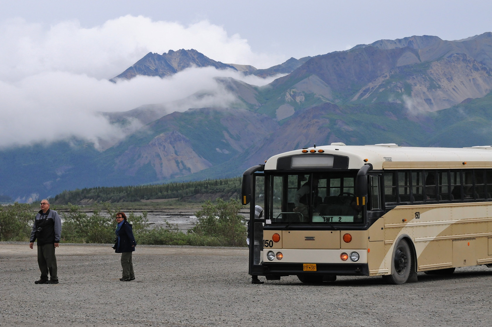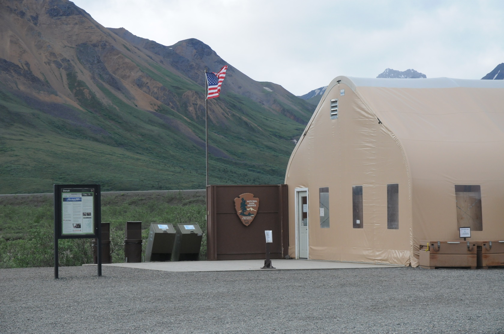 Most visitors may not be aware that only about the first 15 miles of road into the park can be driven by private vehicles. This allows access to the main visitor center and some trails and scenic stretches of road. Thereafter, you must travel on a park-concessionaire operated bus for the rest of the 60 mile trip (each way) to the main visitor center near the end of the road. There are many different bus tours, but only one road. The main destination for most tourists is the Eielson Visitor Center at mile 66 along the gravel road. Here you can walk some trails to see up-close the tundra vegetation and with suitable weather get good views of Denali, the highest mountain in North America. There is some interesting history about the name for this highest mountain.