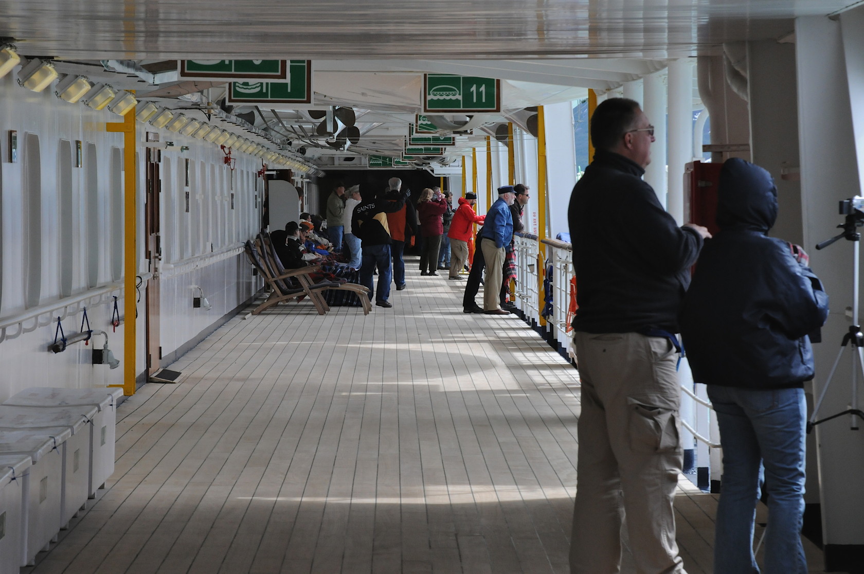 We have not yet mentioned what can be seen between the main ports. One can tend to get jaded after seeing days of snow-covered peaks and seemingly endless coastal forests. But naturalists will want to spend much of their time outside looking for wildlife or scenery. We only saw perhaps a couple of whales in the distance, and most birds were best seen around the ports, but spectacular scenery could be anywhere. Of course the snow and ice diminishes as one proceeds southward and the coastal mountains usually don’t have bare peaks but rather are forest covered.