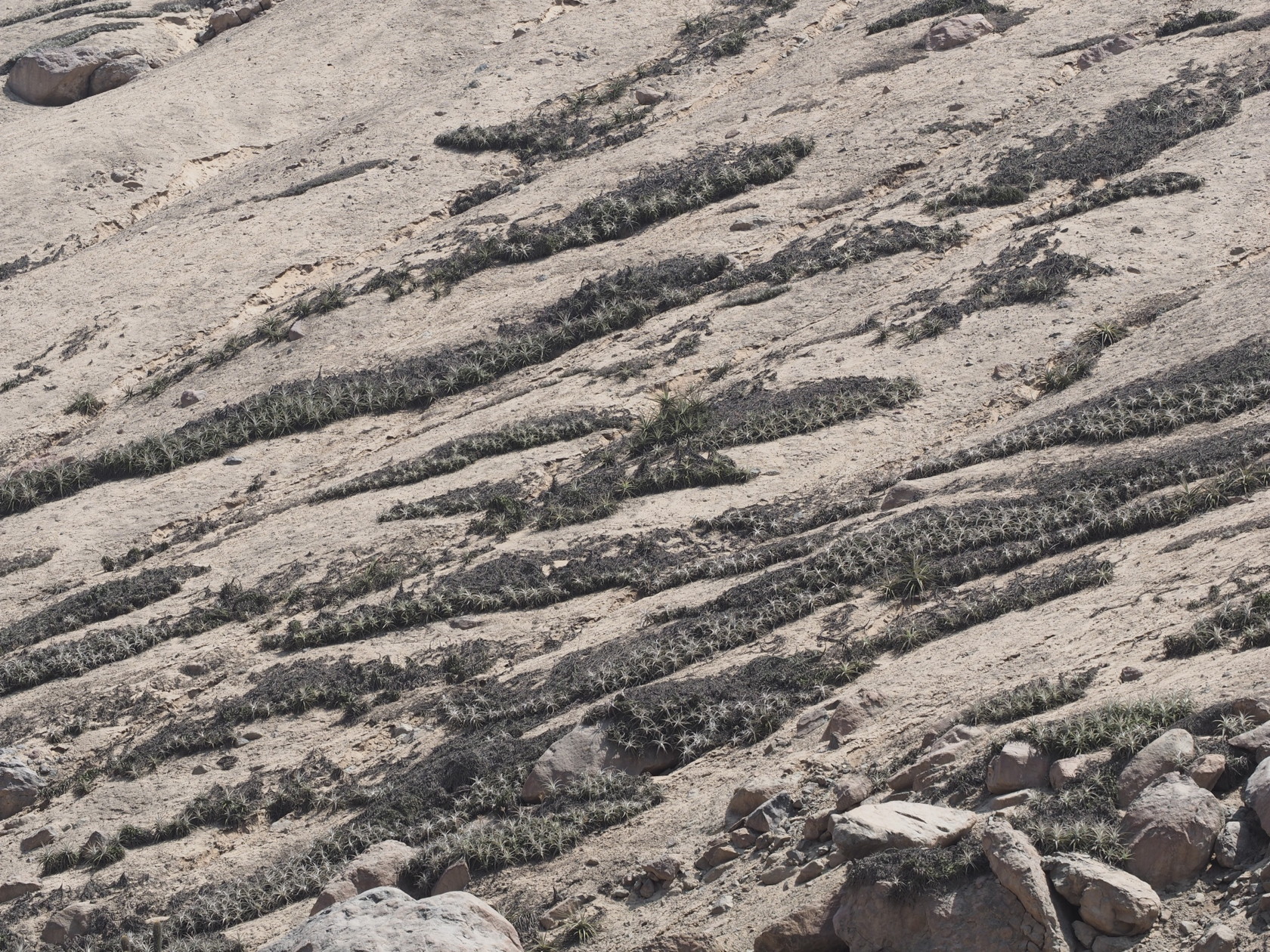 Tillandsia purpurea bands on steep hillside