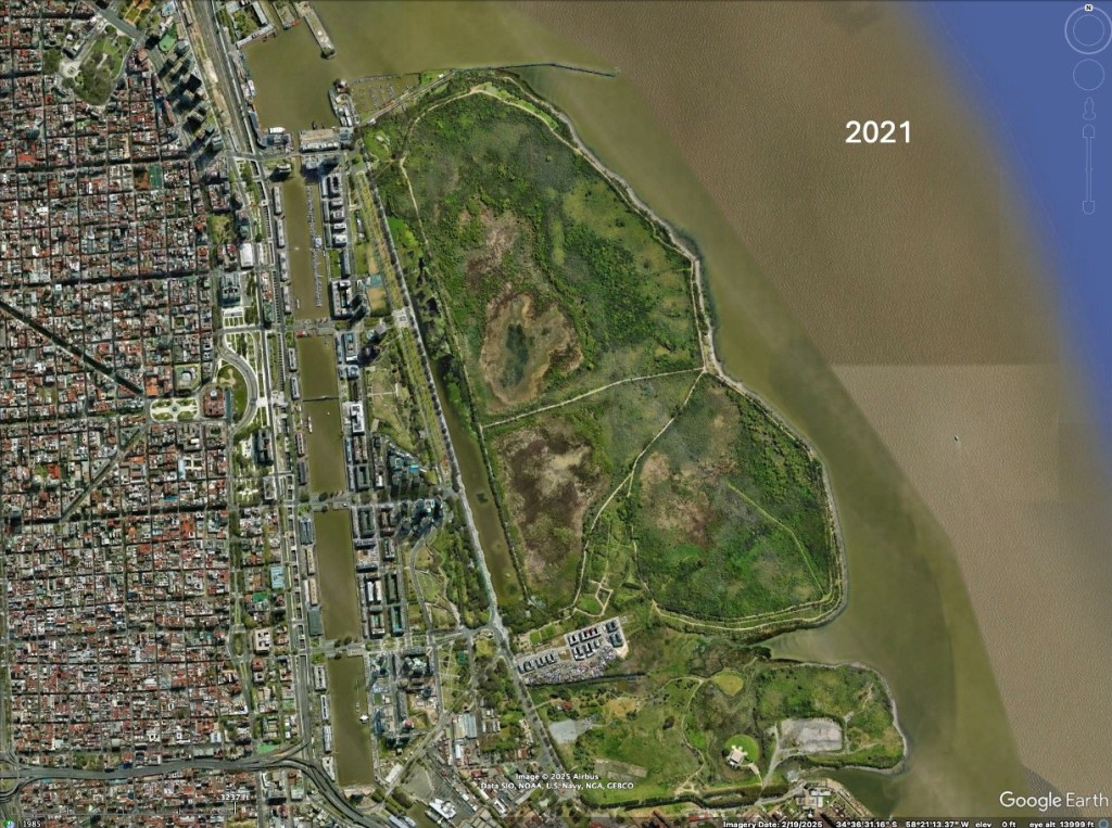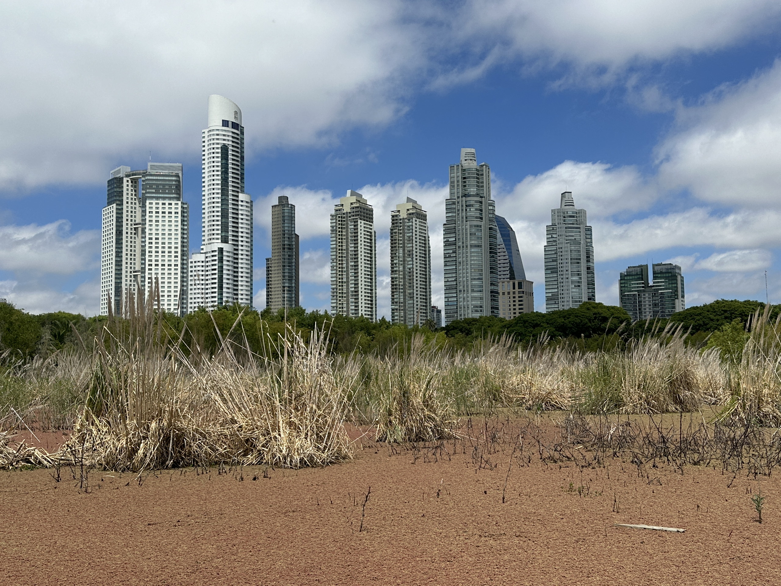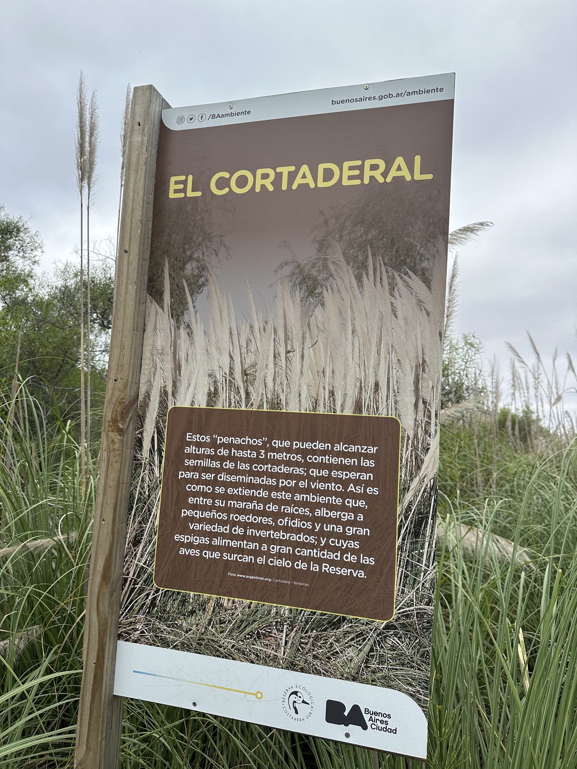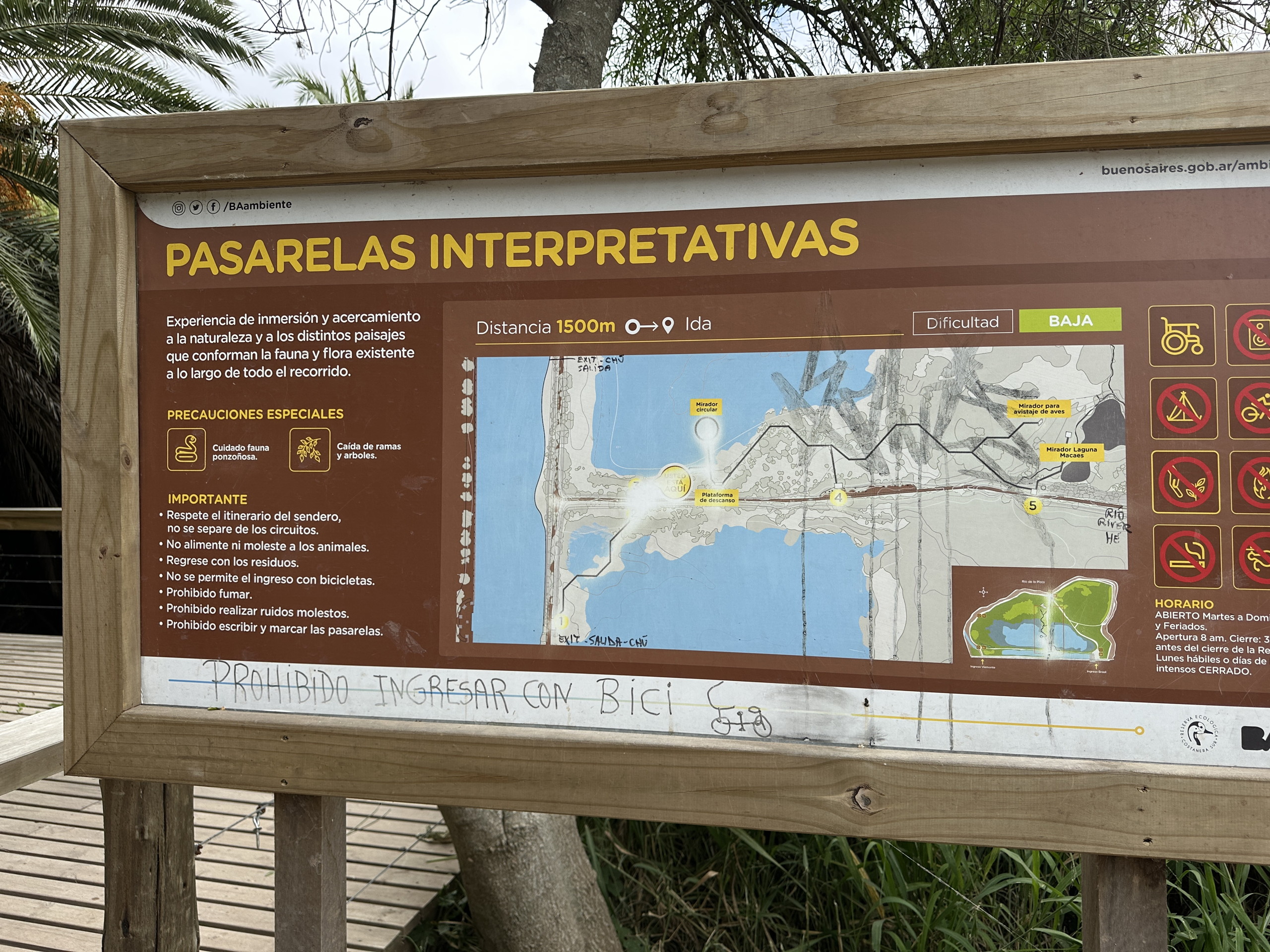 The Reserva Ecologica is an interesting place. A map (below) shows that it lies between the urban core of Buenos Aires and the Rio de La Plata estuary. The outline should give a hint of it’s origin – it is fill dirt. It’s origin lies in the era of the military junta of the 1970’s and early 1980’s. A redevelopment activity, bringing large freeways into the core of Buenos Aires, required the demolition of thousands of houses. This debris, mostly concrete and brick (since this is used for most construction in Latin America), was dumped in the river, delimiting areas that would then be filled in with debris, and eventually with river sediments. This land was to be used to expand the city eastward into the shallows of the Rio de la Plata. With the fall of the government after the Falklands war, this project didn’t happen, and the land became “abandoned to nature. In 1986 the area, about 350 hectares or 865 acres, became the Reserva Ecologica Costanera Sur. Thus, for about 40 years it has been gradually developing, with a mix of trees, grasslands, and wetlands becoming slowly more “natural”. It is now heavily used by porteños for walking, jogging, and escaping from the urban bustle. It is closed one day a week (Monday) for maintenance, and is closed at night.