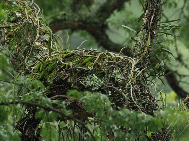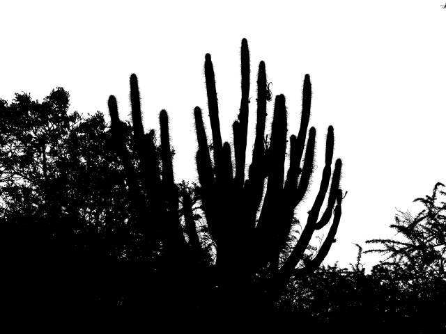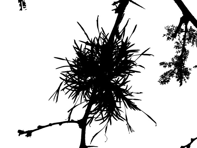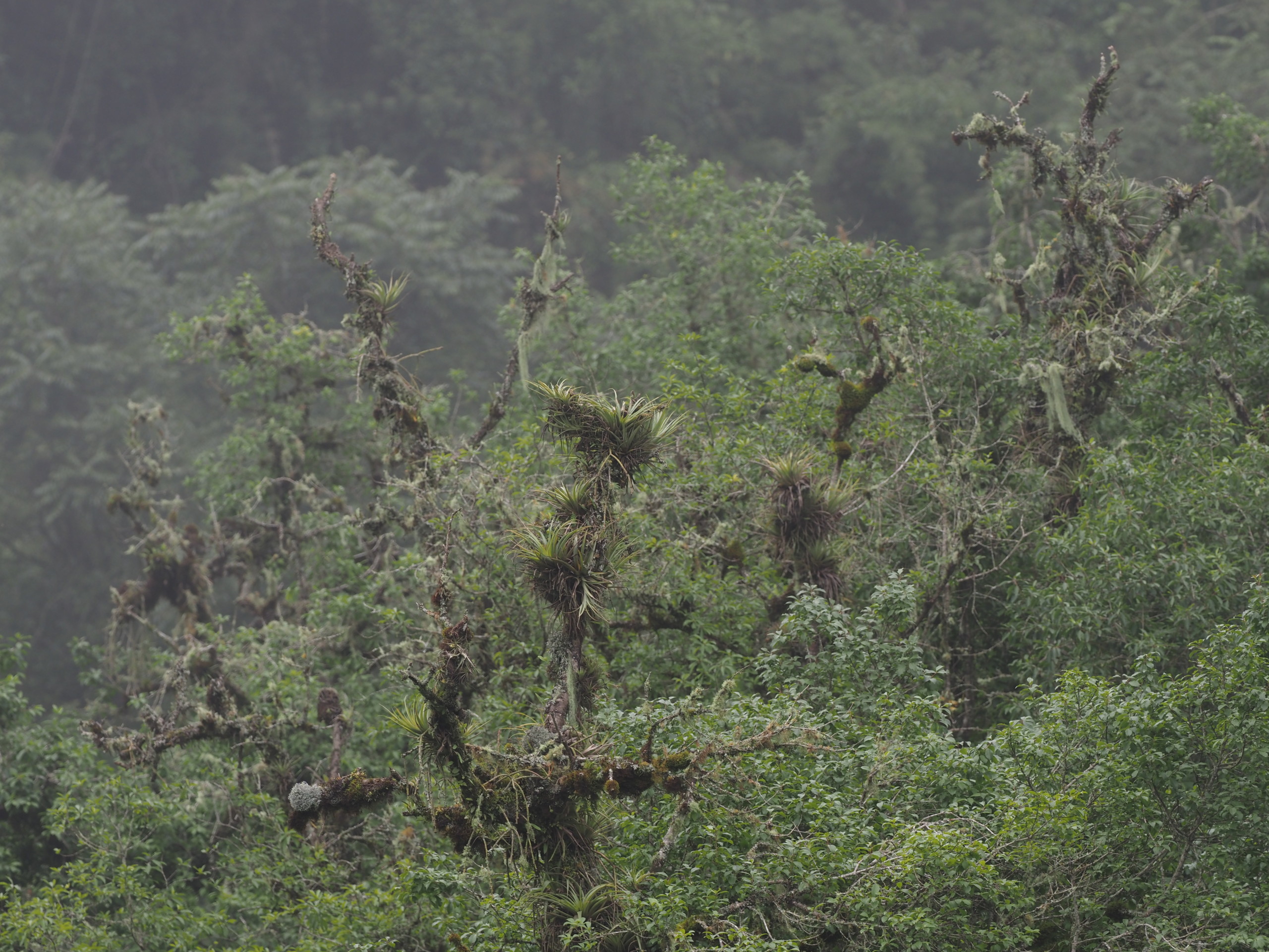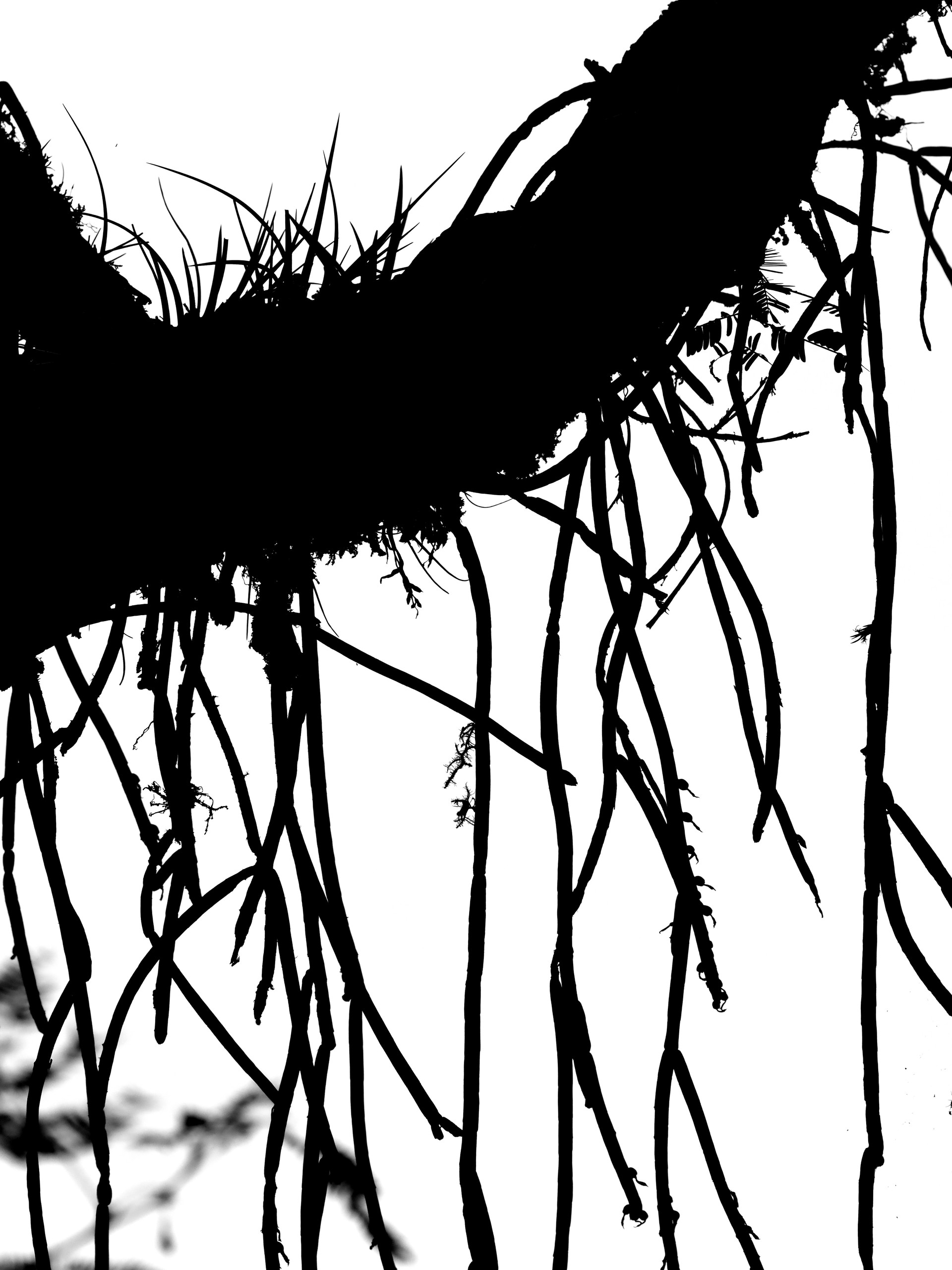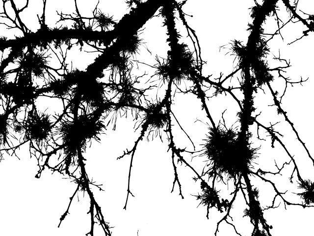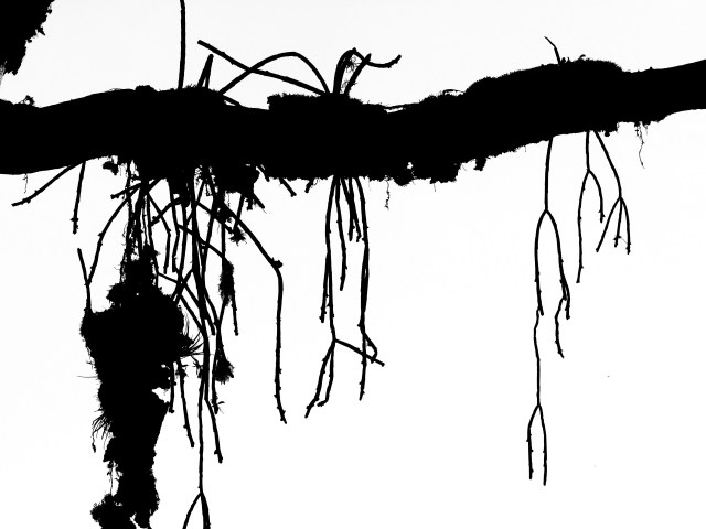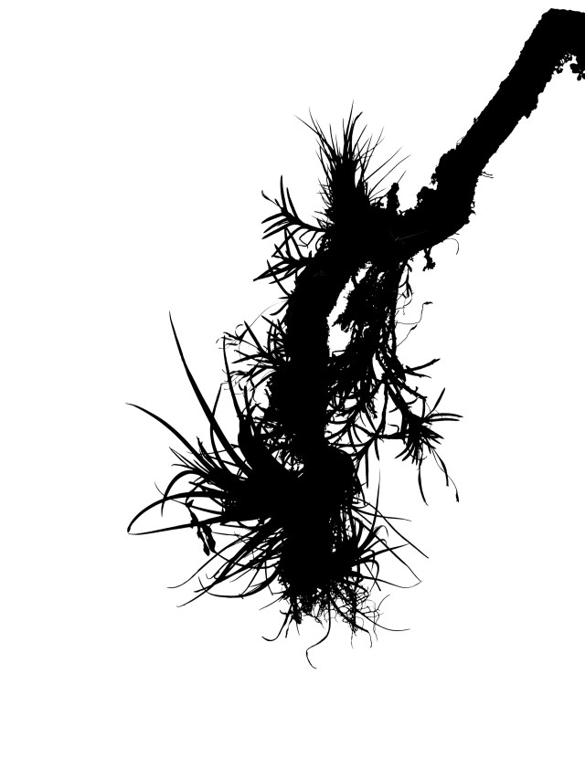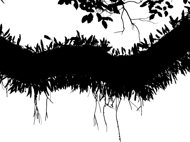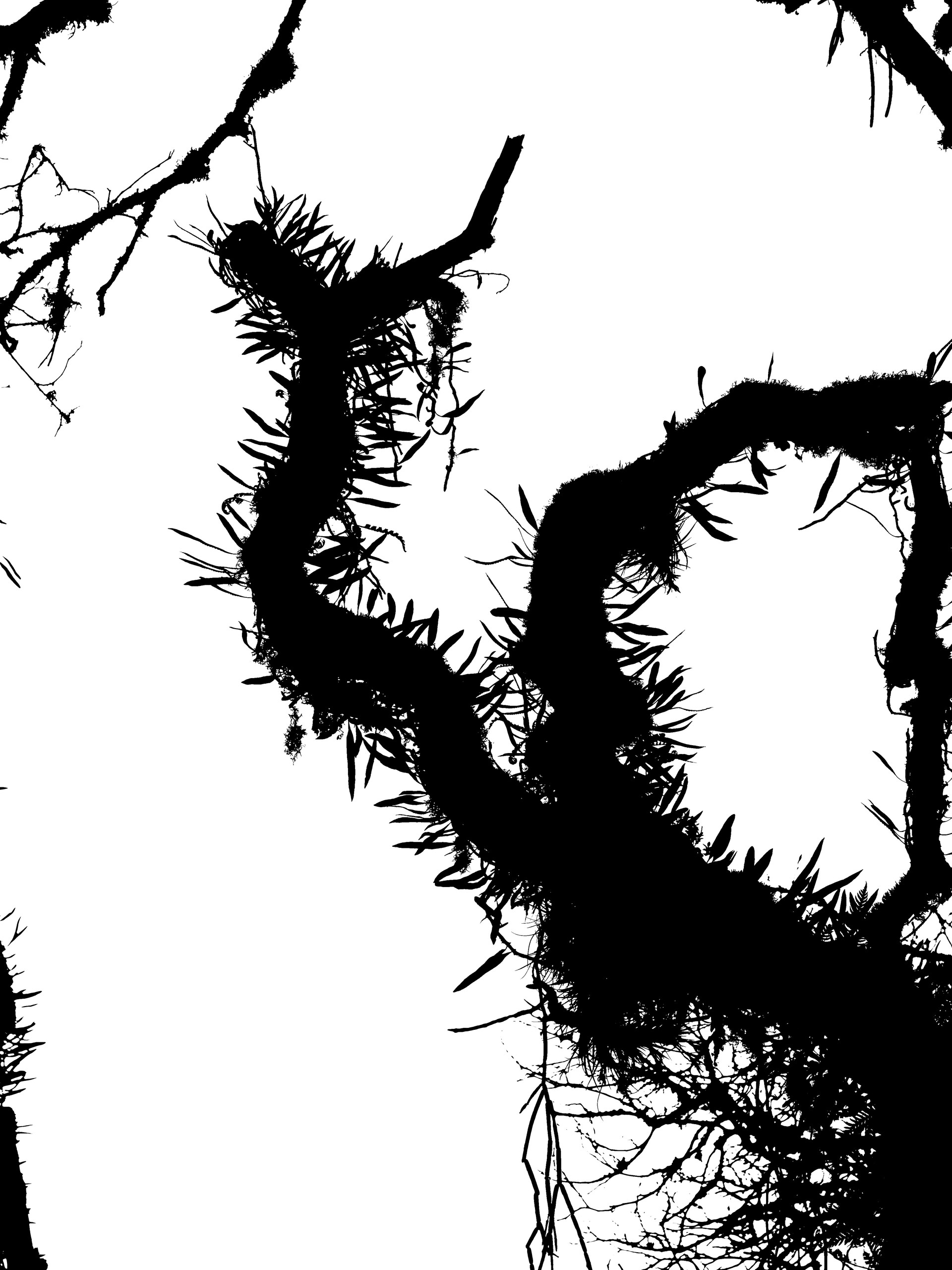 Below are silhouettes created from regular color images of epiphytes that we saw. This is done by greatly increasing the contrast of the images and removing the color saturation. Often, a silhouette is what you see – when looking up towards a bright overcast sky. So silhouettes are a good educational tool to learn to identify some of the types of epiphytes at a distance. Click on any image below to start a slide sequence and to start reading text explaining each slide.