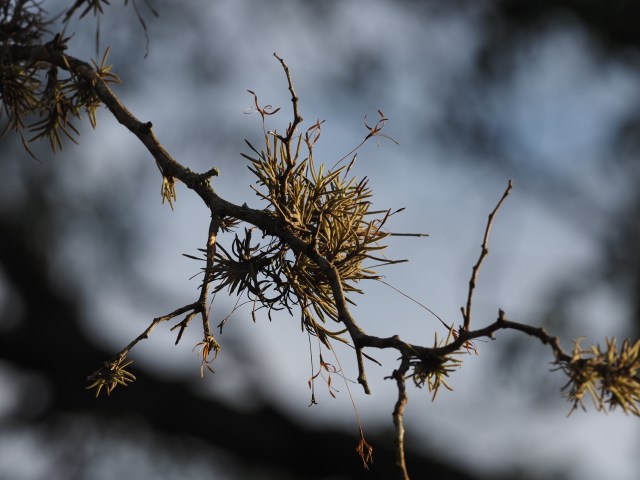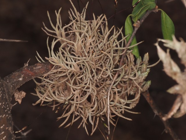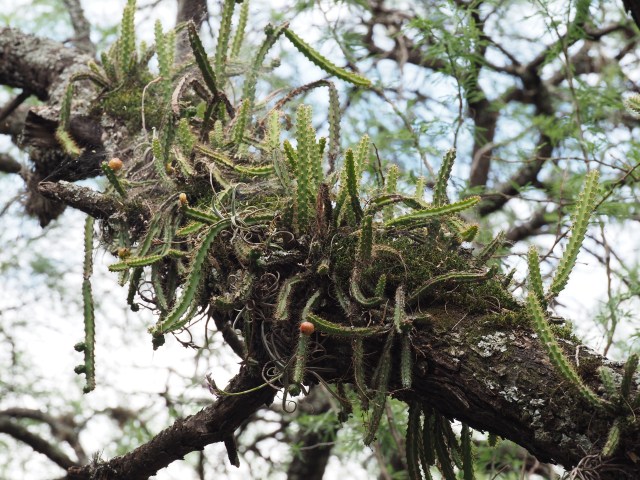 Most of the epiphytes in Argentina are members of the bromeliad family, belonging to the genus Tillandsia. Tillandsia are found throughout the Americas – from the southern US to central Argentina. Most are found in dry areas. A few species are found in the Atacama desert of Peru and Chile where they subsist on fog drip rather than conventional rainfall. There are a few epiphytic cactus found in Argentina – after all, growing on a tree trunk is a very dry environment most of the time!