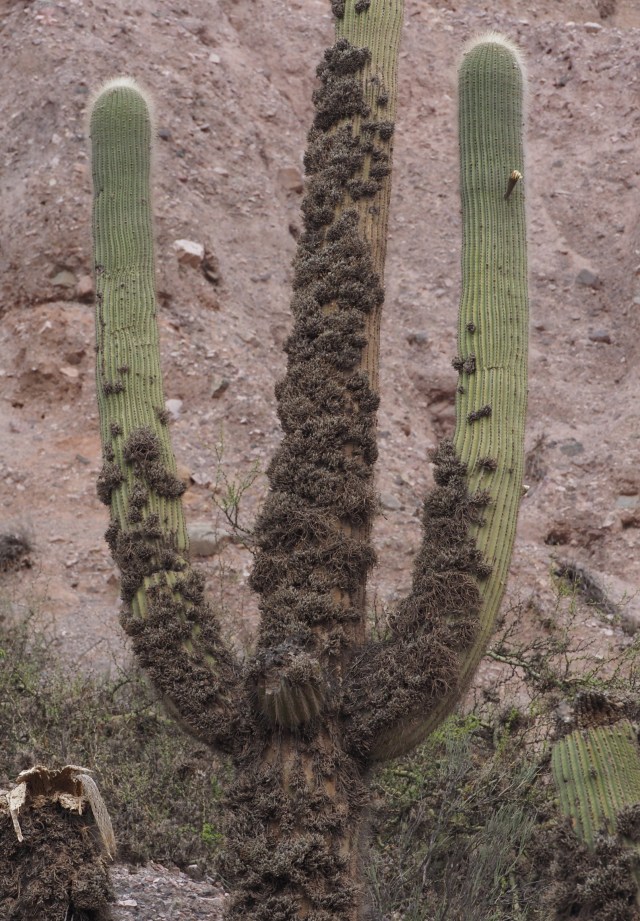 The road network in much of northwestern Argentina defines where you can travel and what areas remain somewhat unreachable. Though there are a modest number of National Parks in the region, for the most part these lack many facilities and some lack road access. Much of our “nature exploration” of the region has been done by the side of the road. This is, in itself, not always a simple task since many/most Argentinean roads in mountainous areas don’t have wide shoulders, and rest areas are almost non-existent. In fact, one has to be driving with a constant eye for places wide enough to safely pull off. Unfortunately, the most convenient and widest spots have usually been discovered by many other drivers – who have used them as bathroom stops. This we can identify with, since publicly-accessible restrooms are very rare in much of Latin America. Yes, you can use them in a roadside restaurant – but these are usually reserved for patrons and are rare in the countryside.