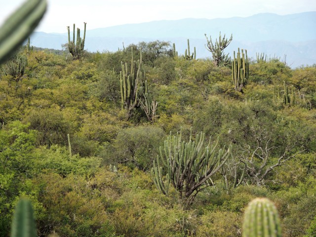 Looking at the maps below that focus on the northern segment of our travel, one can see that we crossed from dry areas to moist (forested) areas multiple times. From Salta to Tilcara there is a transition from wet, yet still seasonal forest to drier landscapes in the Humahuaca Valley which Tilcara sits in. This road continues to the Puna, at 13,000 ft near the border with Bolivia. Then the road the leads south from Salta to Cafayate passes through a scenic canyon that becomes increasingly drier as one proceeds south. The area around, and south of Cafayate, is in the rain shadow of high mountains on both sides. Our route south from Cafayate led over the mountains to the east, reaching 11,000 ft in the pass, and to the resort town of Tafi del Valle. Then the road quickly descended to the lower Chaco terrain to the east, through moist subtropical wet forests. And, after a lowland driving stretch, the road again headed gradually westward climbing through another low pass with moderately verdent seasonal forest. Thus, there are various transitions between relatively moist and dry environments in northwestern Argentina associated with the multiple mountain ranges, This makes the variations in vegetation, and associated wildlife, especially interesting.