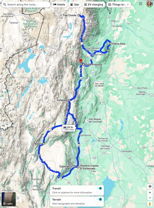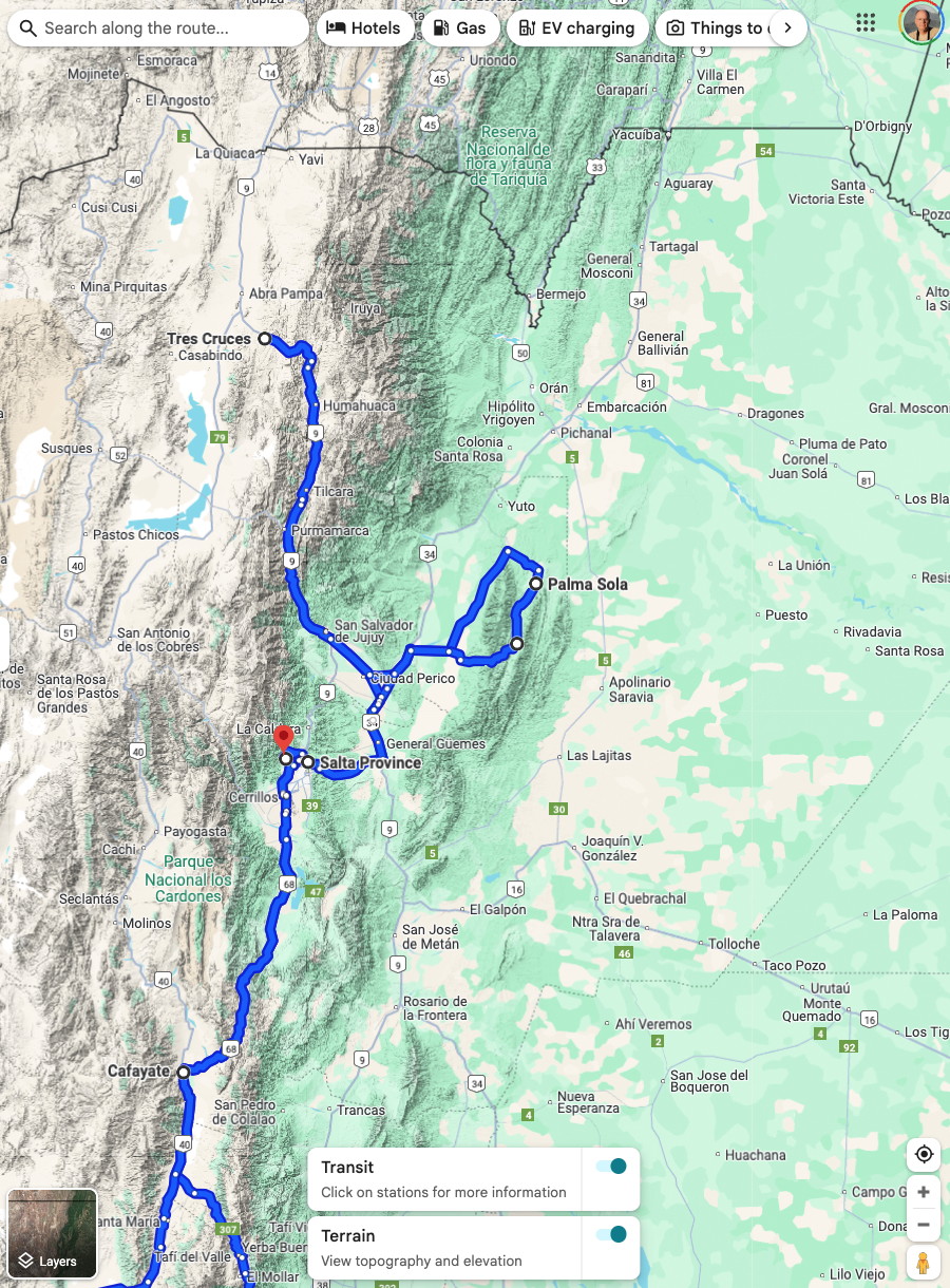 To visit NW Argentina, we had to fly from Santiago to Buenos Aires, spend the night there, and then fly the next day to Salta, where we rented a vehicle.