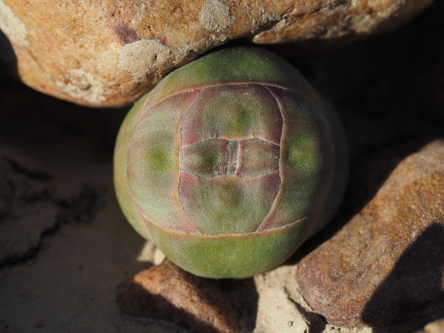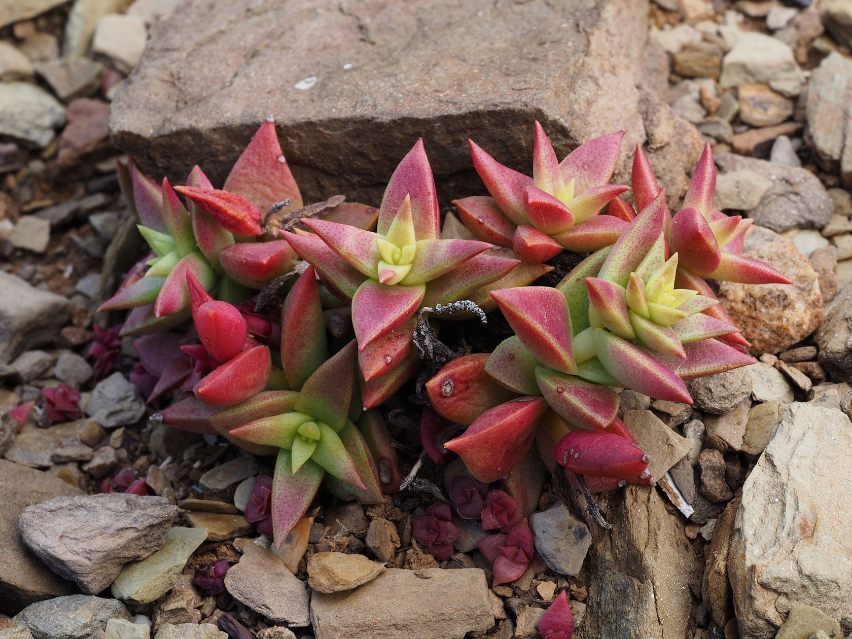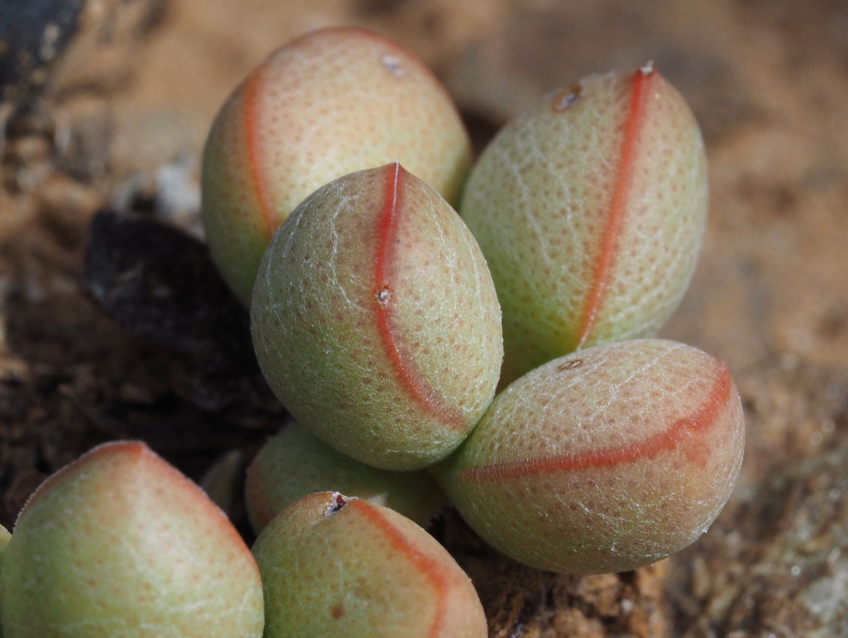Gibbaeum sp. and very reddish Crassula columnaris.