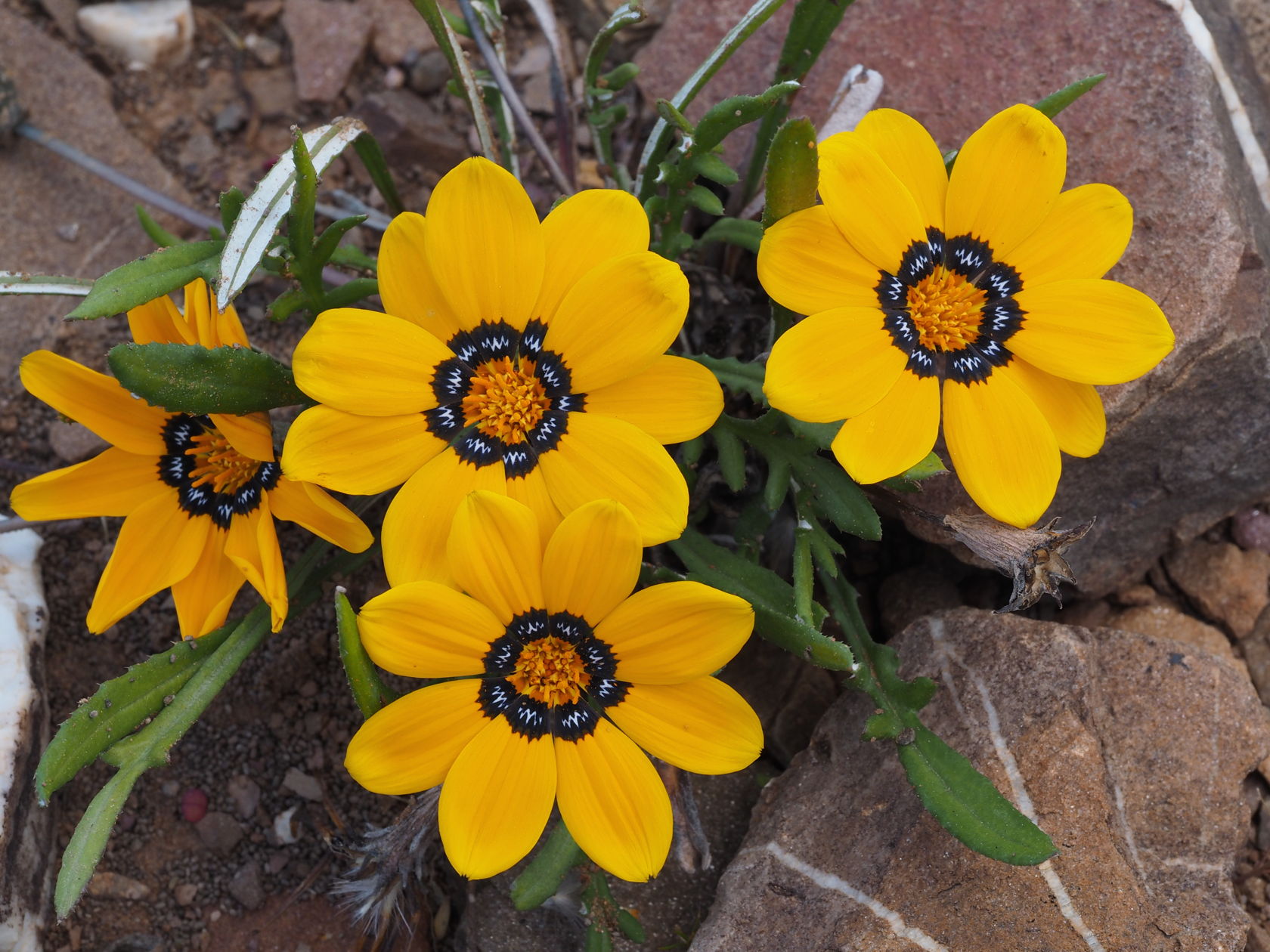 Gazania flowers. Note the colorful markings near the center of the flower.