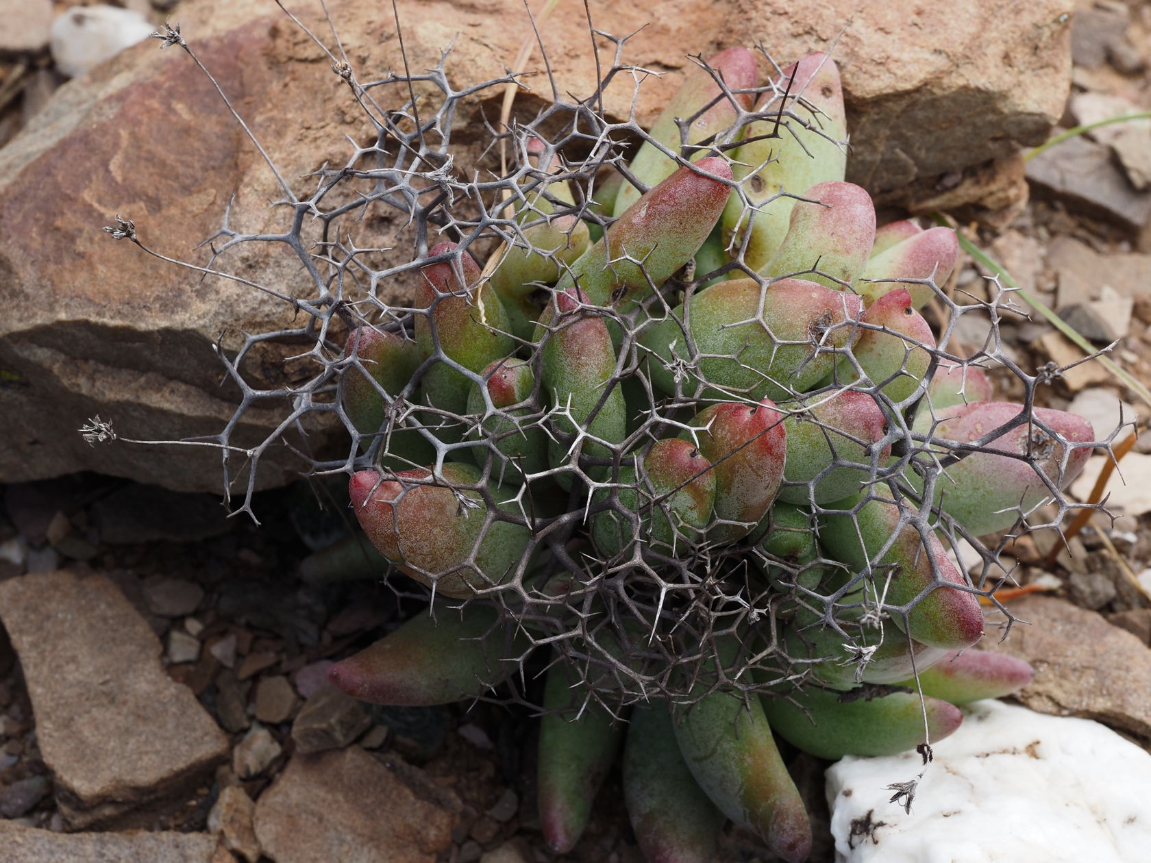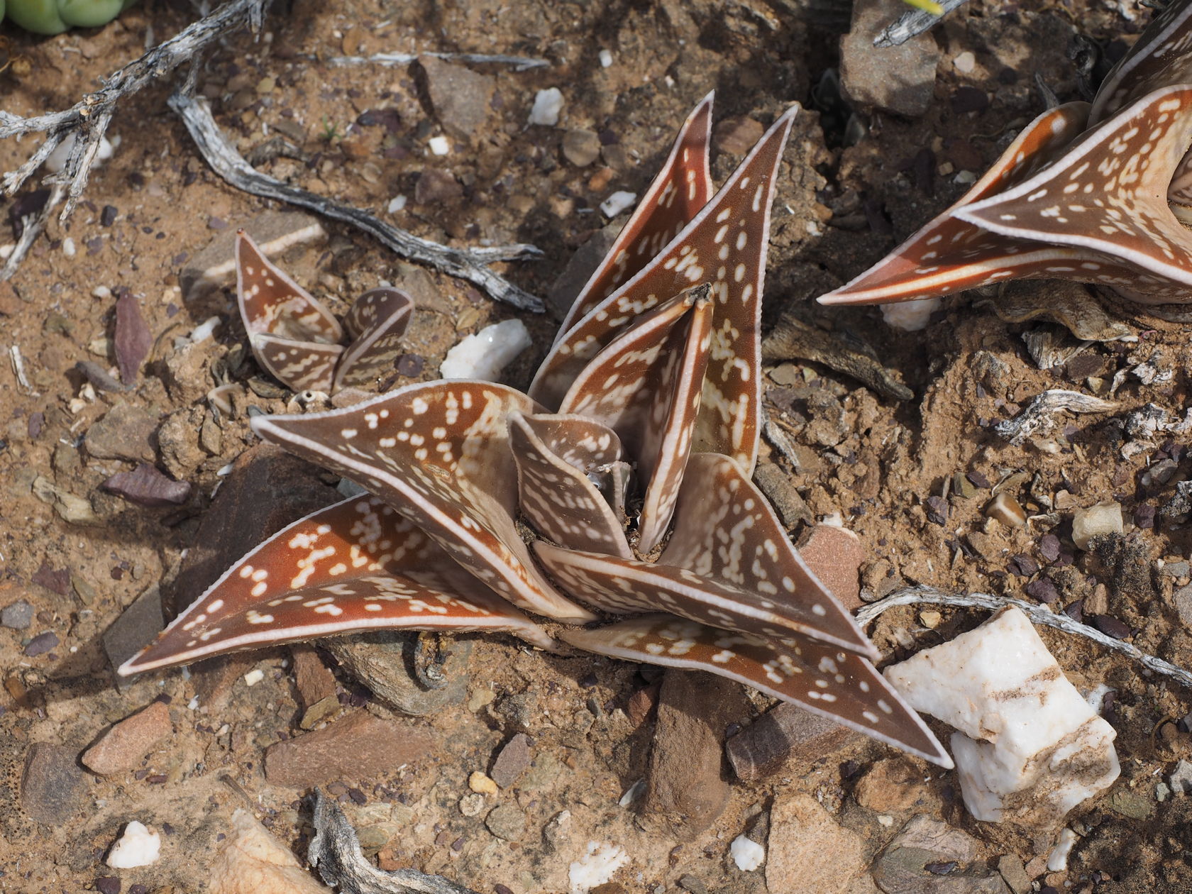 We have twice visited “The Place”, both times in 2015, for two and five nights. For succulent plants it is one of our favorite locations, having perhaps the greatest variety of small succulents of any of the farms we have stayed at. The farm is large enough to have a variety of succulent habitats. The more you walk the more succulents you discover. As a guest you can try some of the host (Lizelle) great breads, soups and other dishes. That and some home grown vegetables can be delivered to your cottage for you to enjoy at leisure.