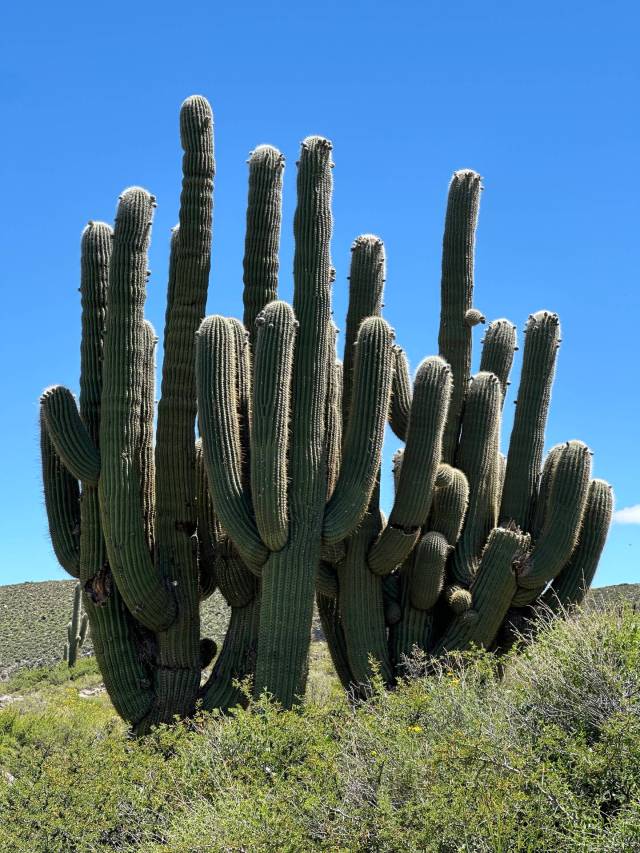 The following day involved a hill-climb to about 10,000 ft before descending through the touristy town of Tafi del Valle. Then there was a long descent on a very windy road with heavy traffic (with fast cars and slow trucks) through moist forests to the agricultural plains before a several hour highway drive to our next night’s stay. The most scenic part of this road, through the moist forest, had very few places to stop safely or wide shoulders -a characteristic of many Argentina )and Latin American) roads.