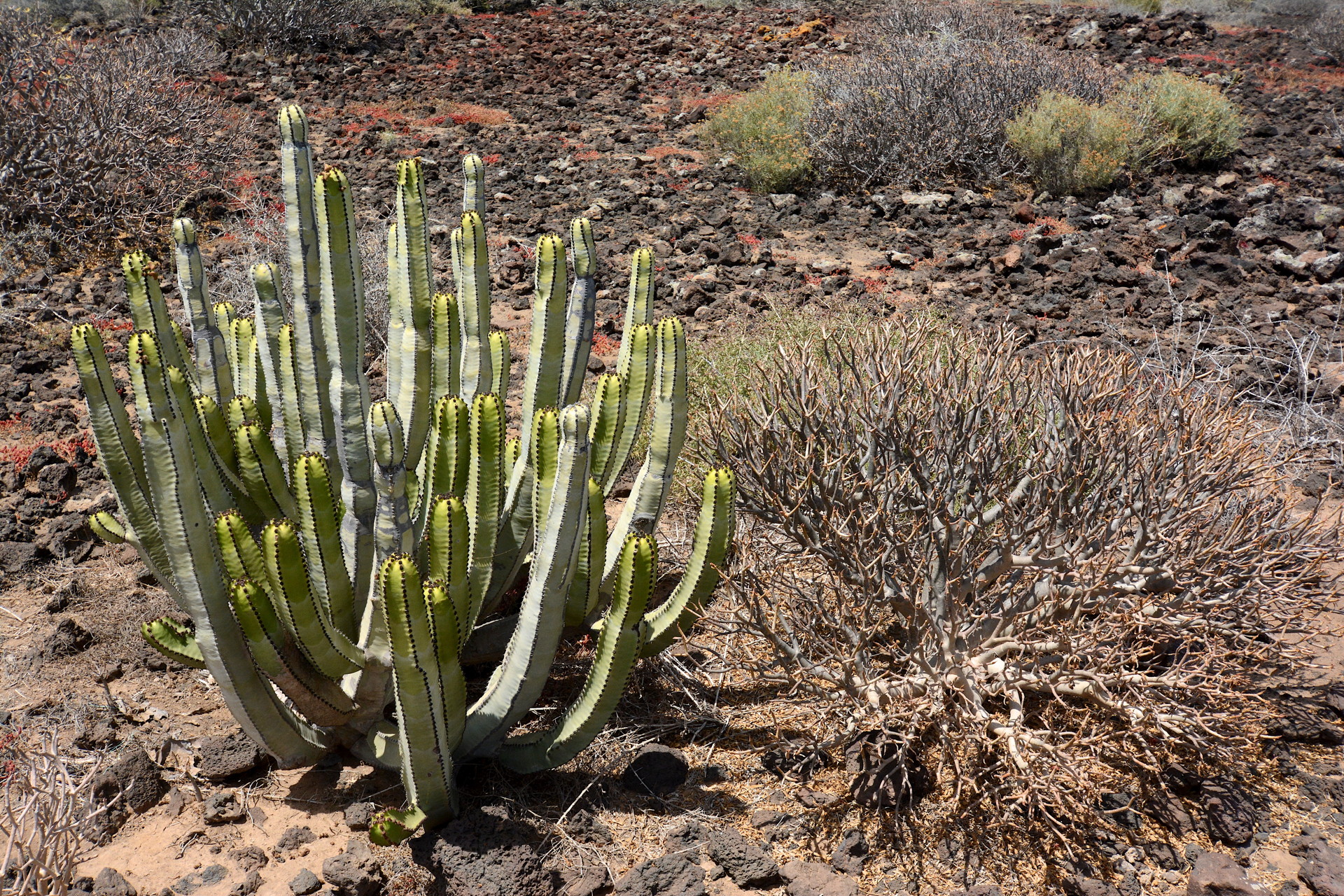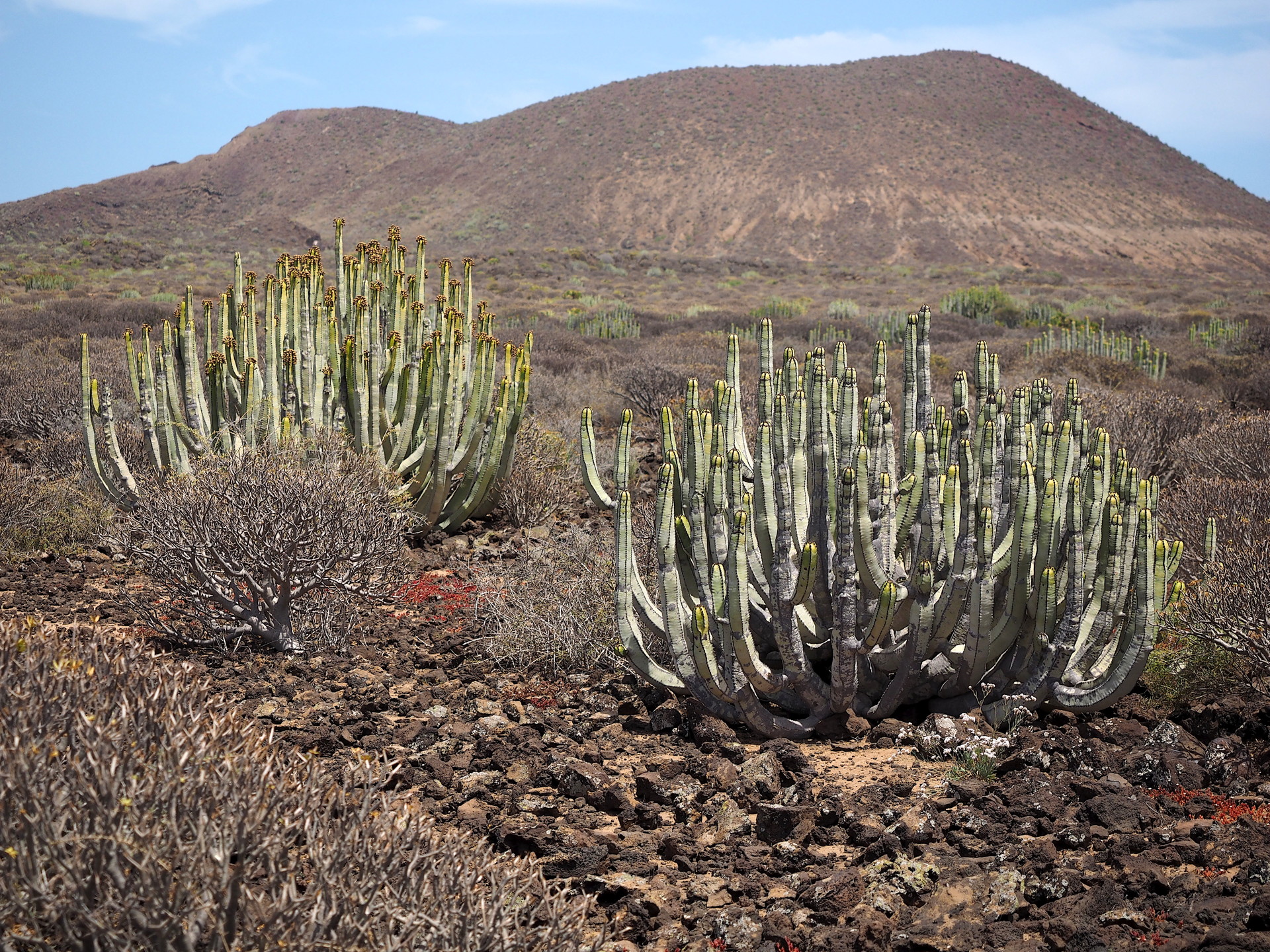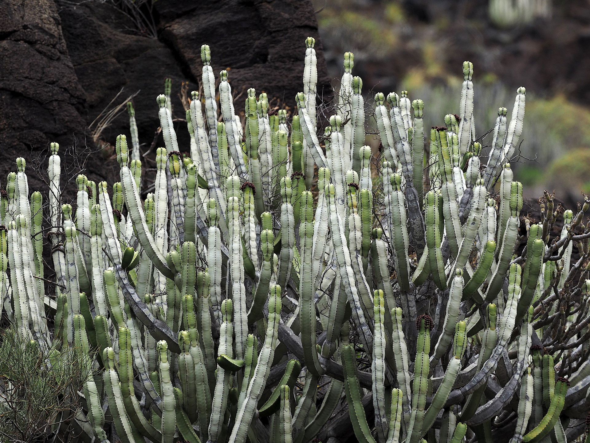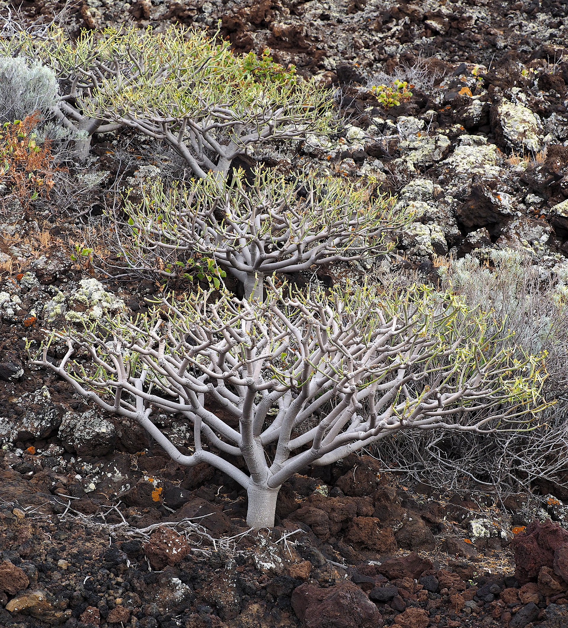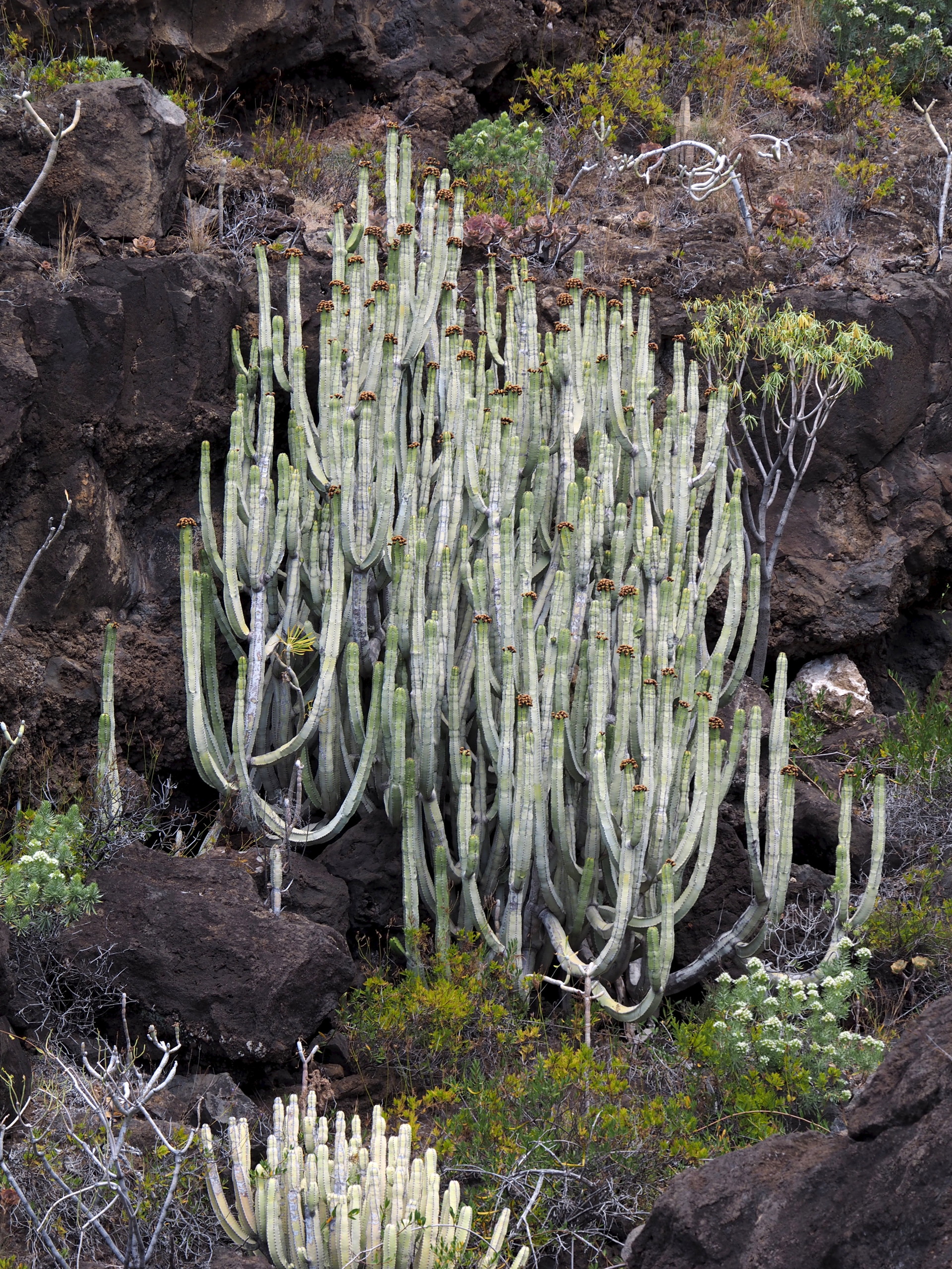On the lee side of the western Canary Islands we find the large Euphorbia canariensis.