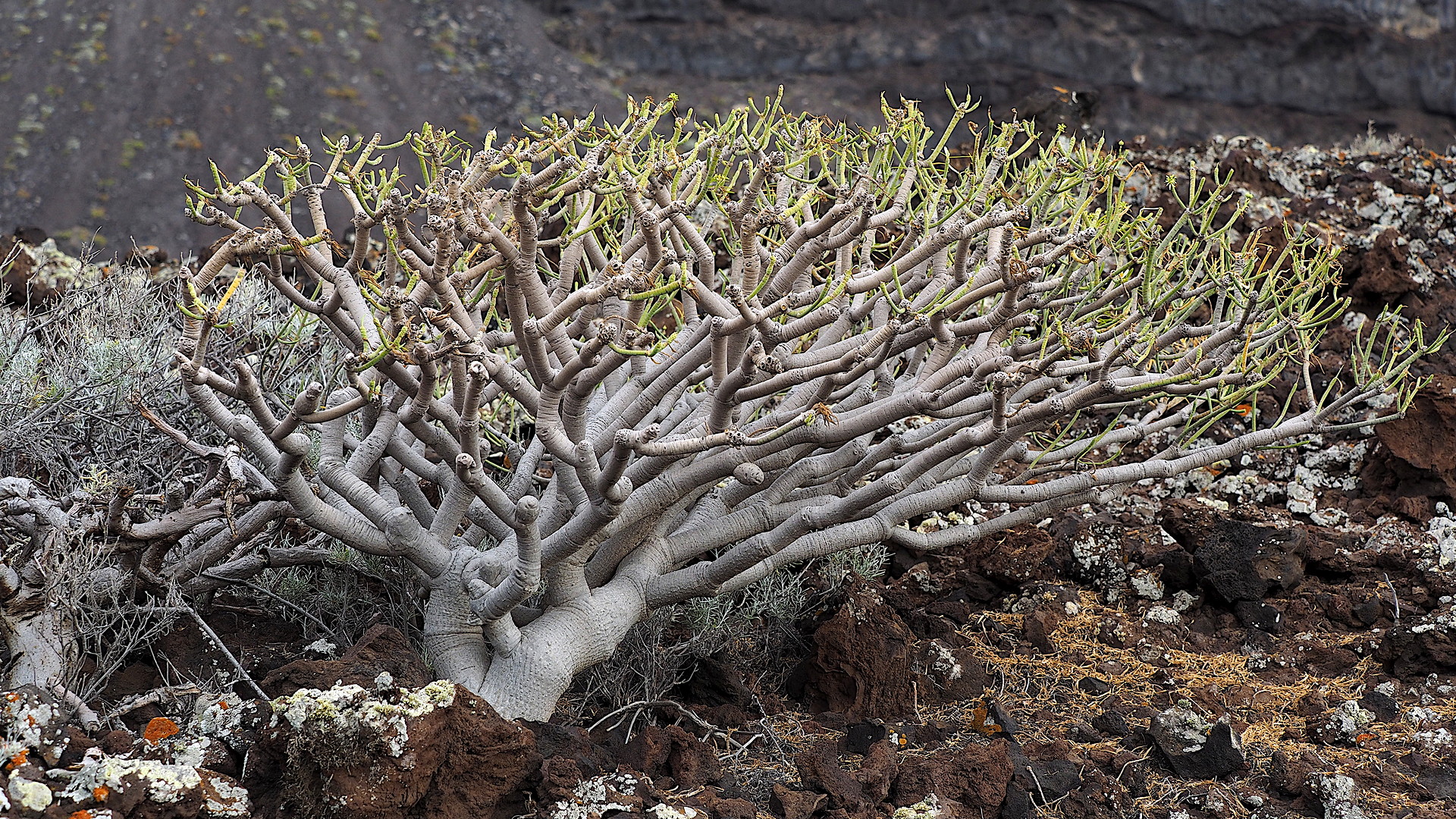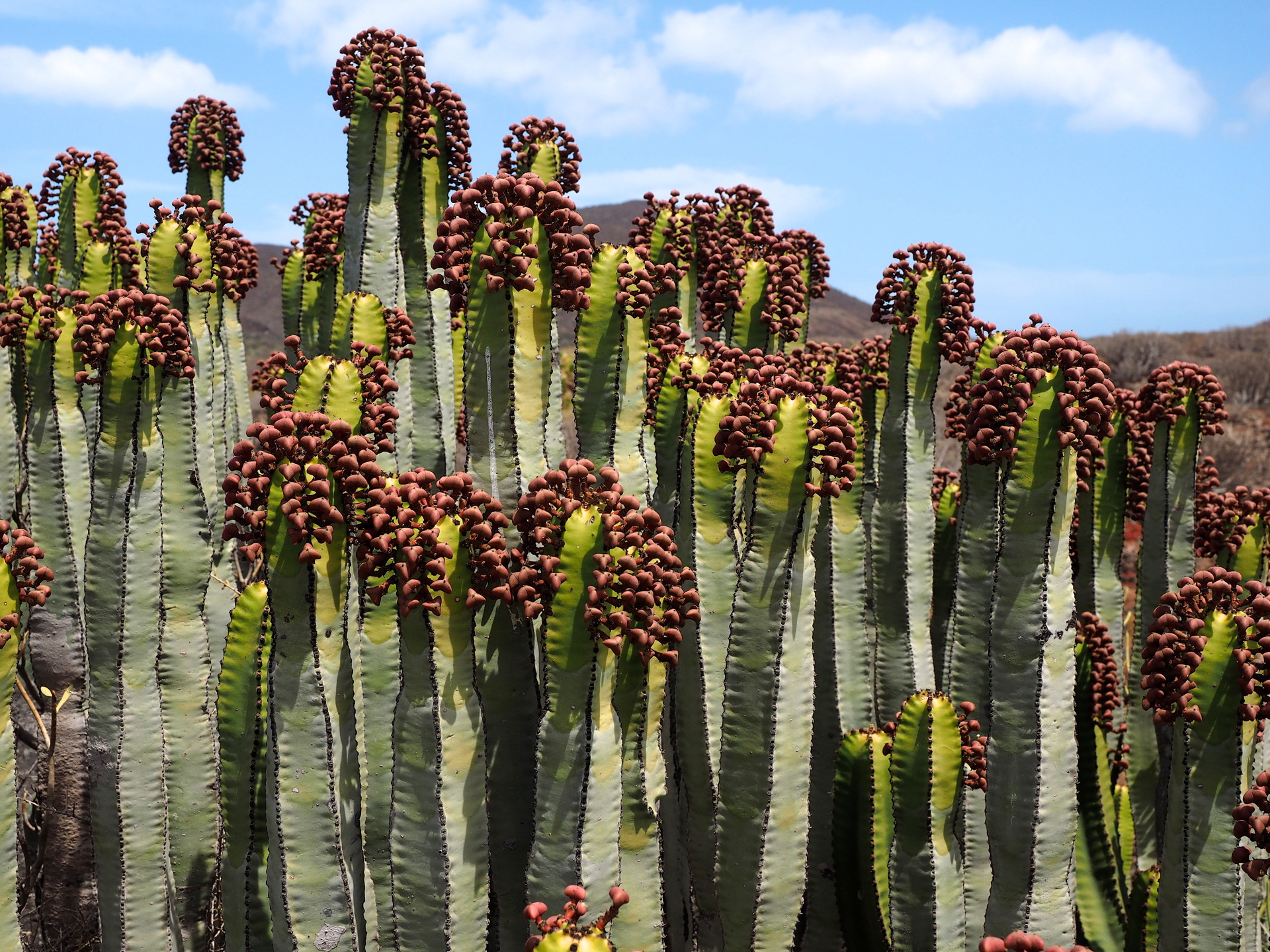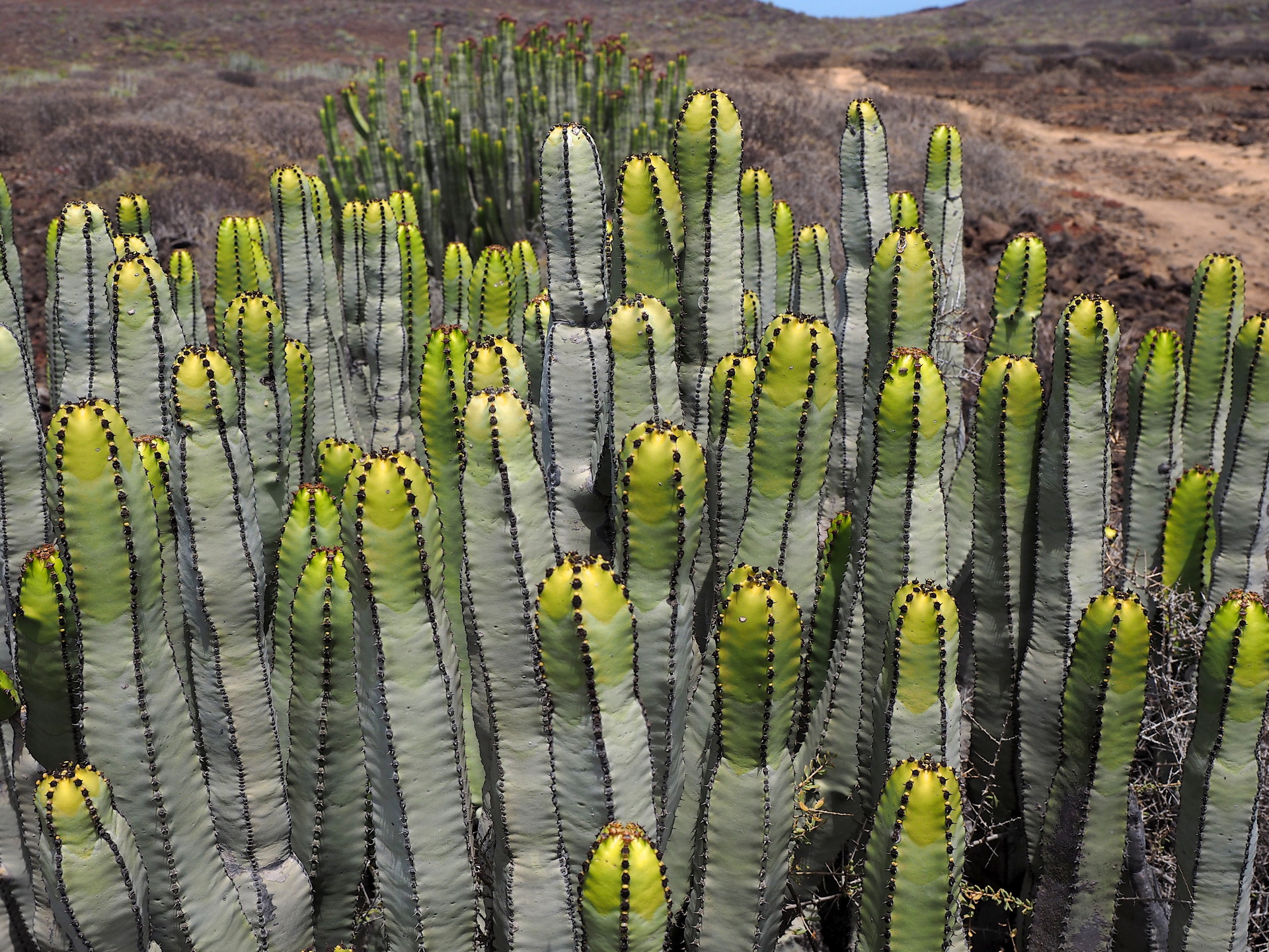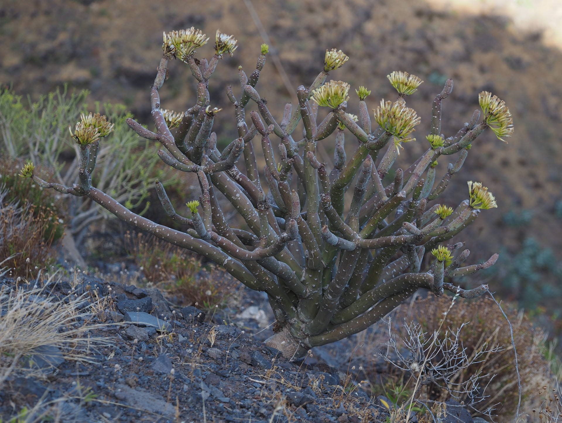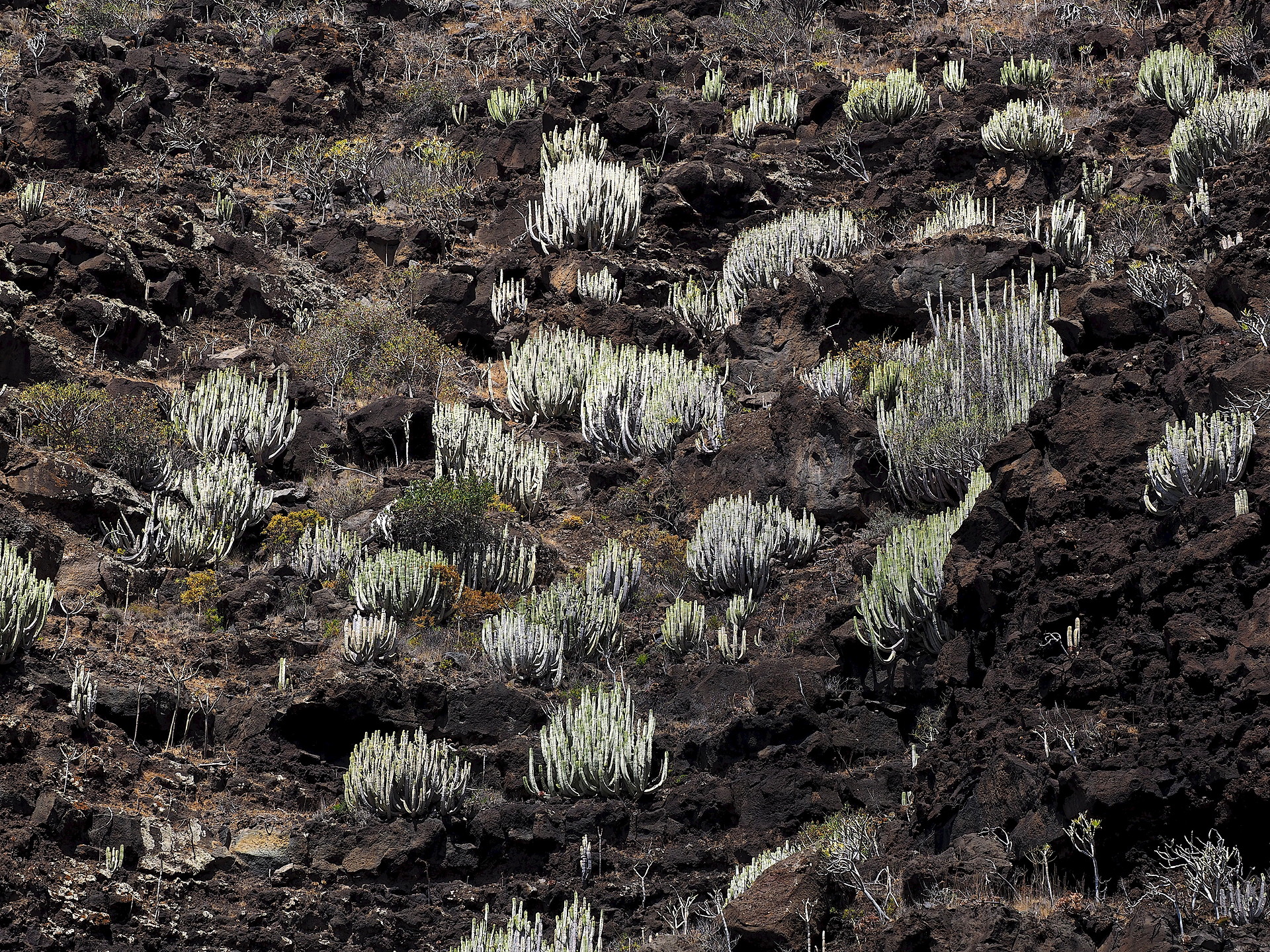 On the lee side of the western Canary Islands we find the large Euphorbia canariensis.