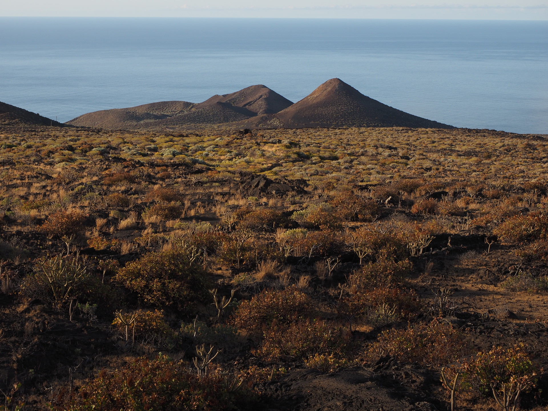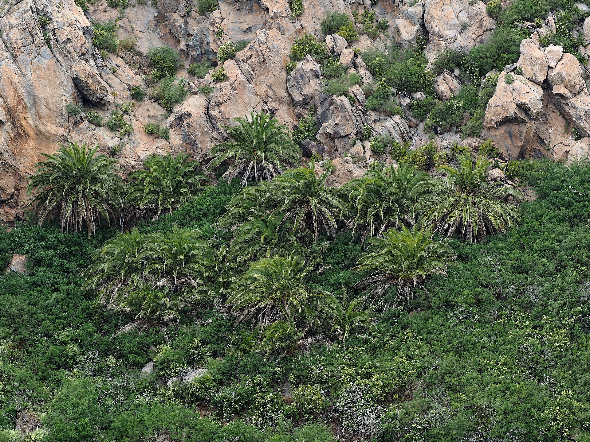 We could attempt a comprehensive description of the different environments in the Canary Islands but such information is available online and we won’t detail it here. We will highlight the unique aspects of the vegetation of the islands because they are the main reasons for a naturalist to visit the islands. We start will a summary of the key environments on the higher islands. The Canary Island research community has identified the following main ecosystems: coastal desert scrub, thermophilous woodland, laurel forest, pine forest, summit heath and summit scrub. Some of these are easily identified by the casual traveler such as the coastal desert scrub, the laurel forest and the pine forests. Some others, like the thermophilous woodland, have been greatly altered on the islands where they occur and are not easily identified. The summit heath and scrub environments occur above the pine forests and will be seen by tourists ascending to higher volcanic landscapes above the pine forests on Tenerife and La Palma.