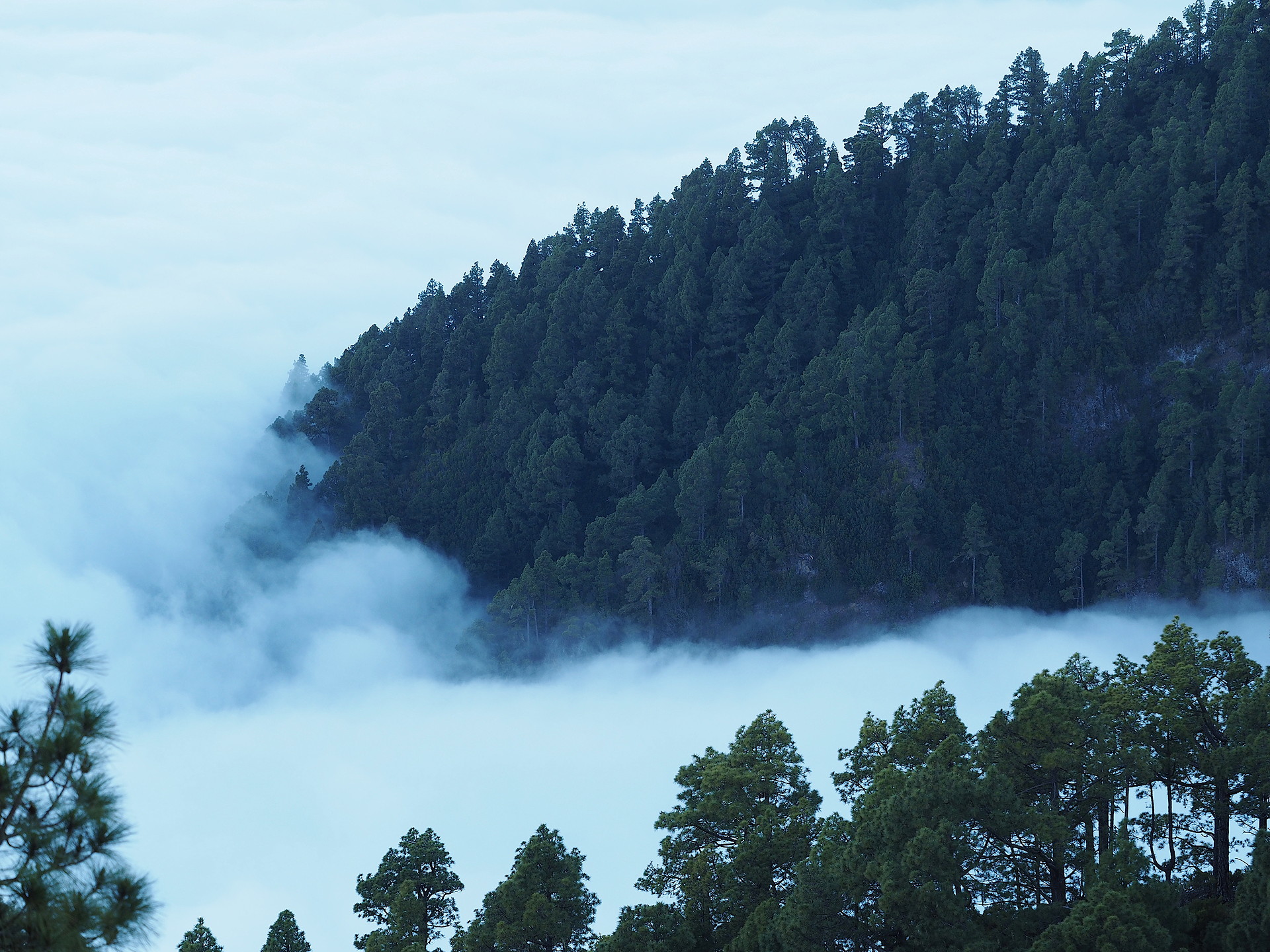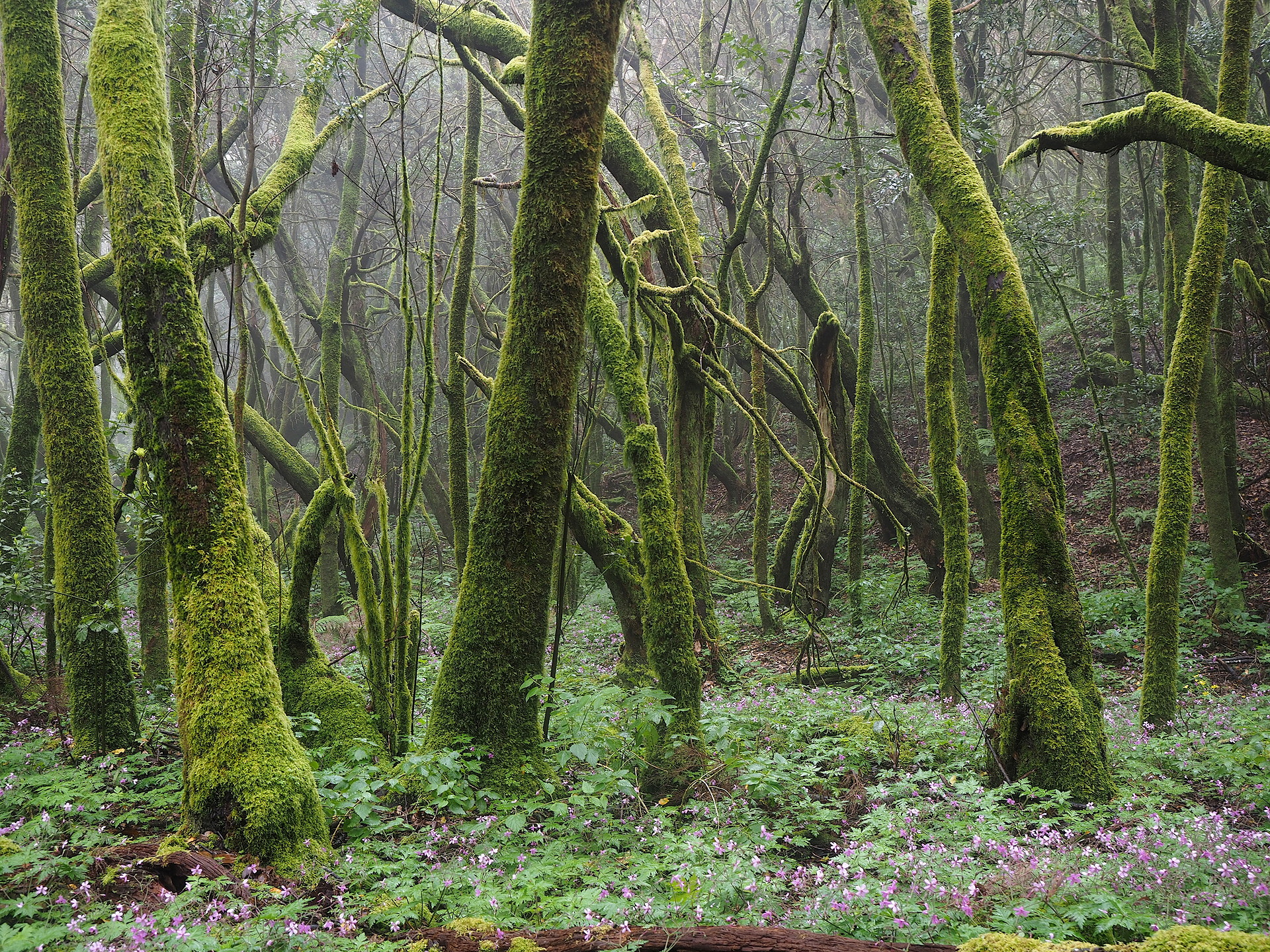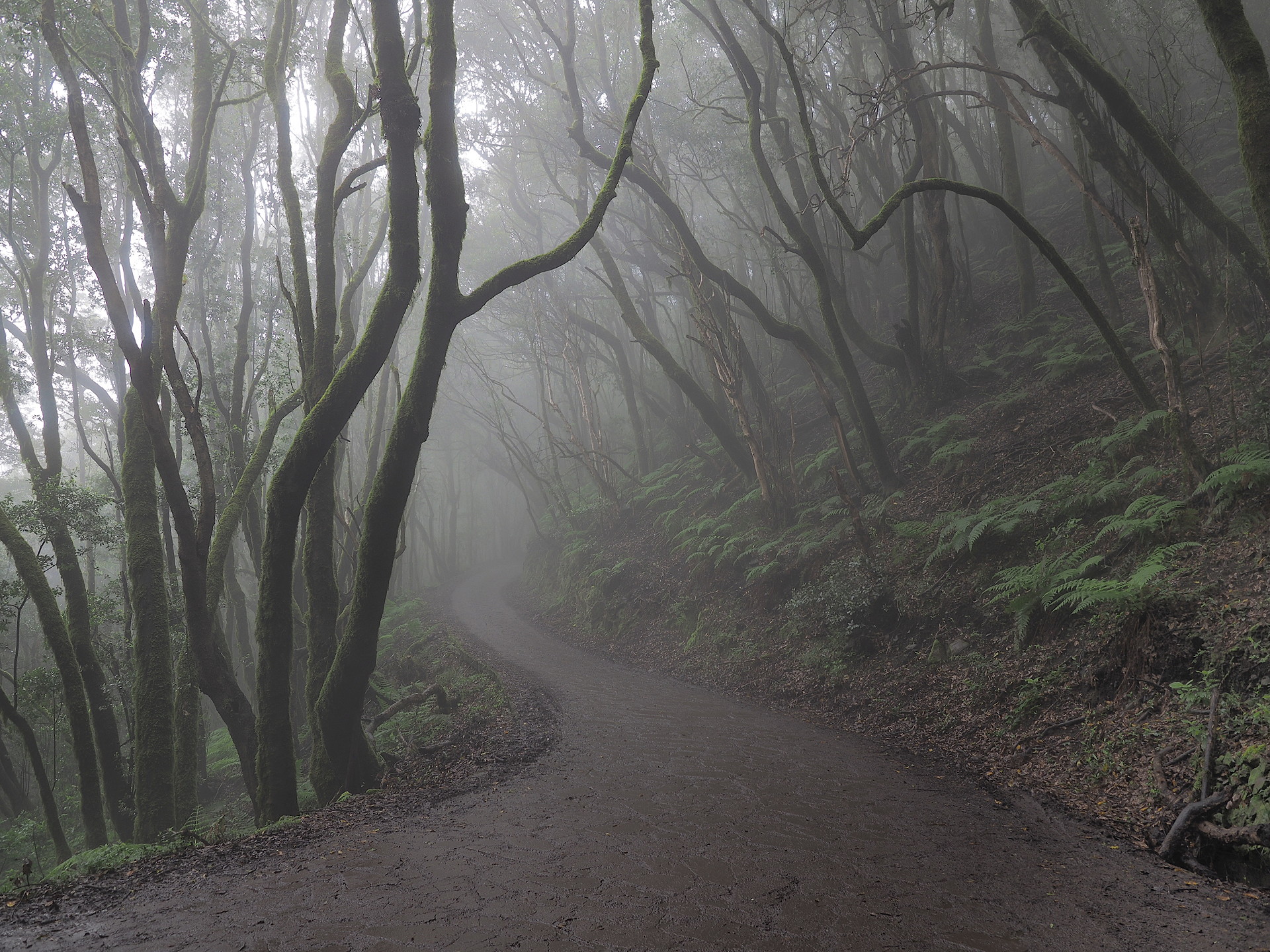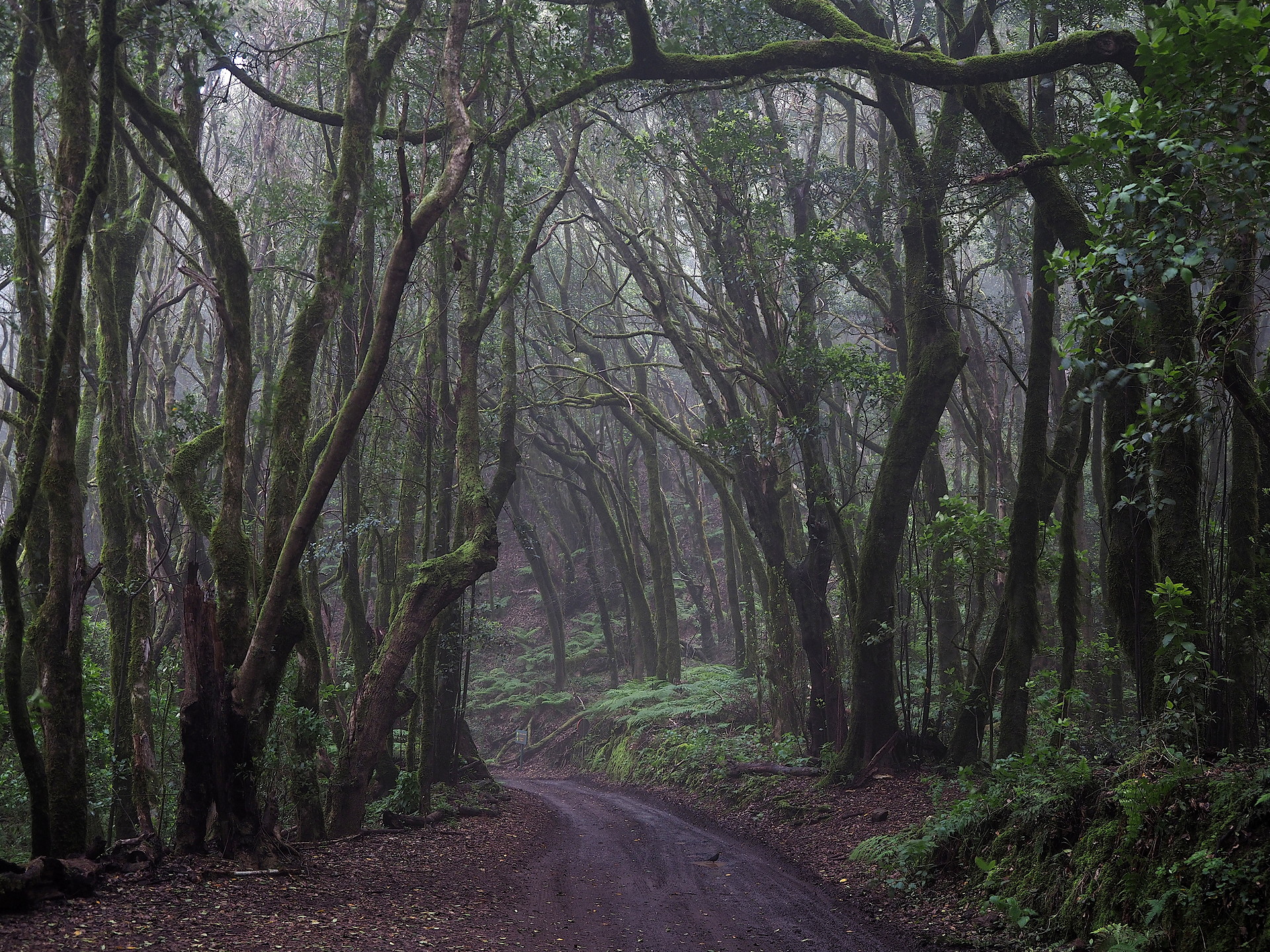 The laurisilva forests of the Canary Islands are a unique vegetation regime that is distinctive of the fog layer on islands that are high enough to readily intercept the low cloud layer. They are not found on the low islands of Fuertevetura and Lanzarote, though one very small ridge on Fuerteventura extends frequently into the cloud layer. They are poorly developed on Gran Canaria, both due to the topography and human disturbance. The best forests are found on La Gomera and protected in National Park Garajonay, with good, but small tracts of laurisliva on El Hierro and substantial tracts on Tenerife and La Palma. However, not all laurisilva tracts are easily visited – they may be on very steep slopes, lack trail access or roads that pass through them are busy and there may be few places to stop.