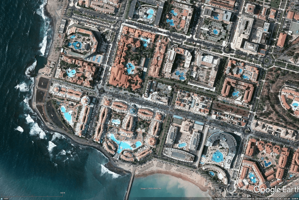Most tourists visiting the Canary Islands do so on packages; the accommodations are concentrated on the south and east sides of the islands in locations with sunnier and warmer weather. These visitors stay in clusters of mega-resorts – making the Mexico resorts of Cancun or Los Cabos seem small by comparison. These visitors often do not travel to other islands – and a few might not even leave their resort complexes.