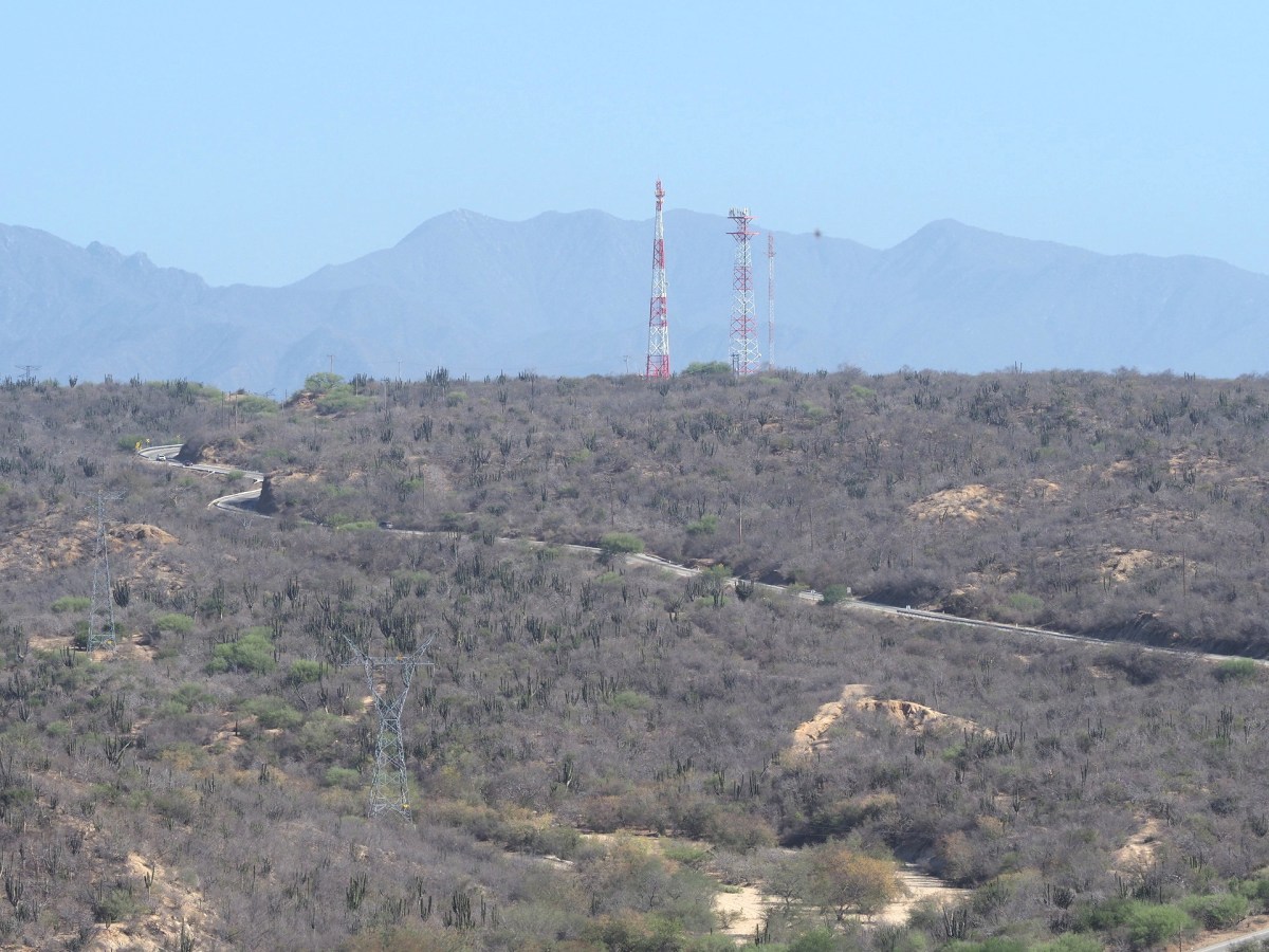 Telephoto view of the previous shot to show better the scale of the dry forest trees compared with the highway. The base of the tower is about 850 ft above sea level.