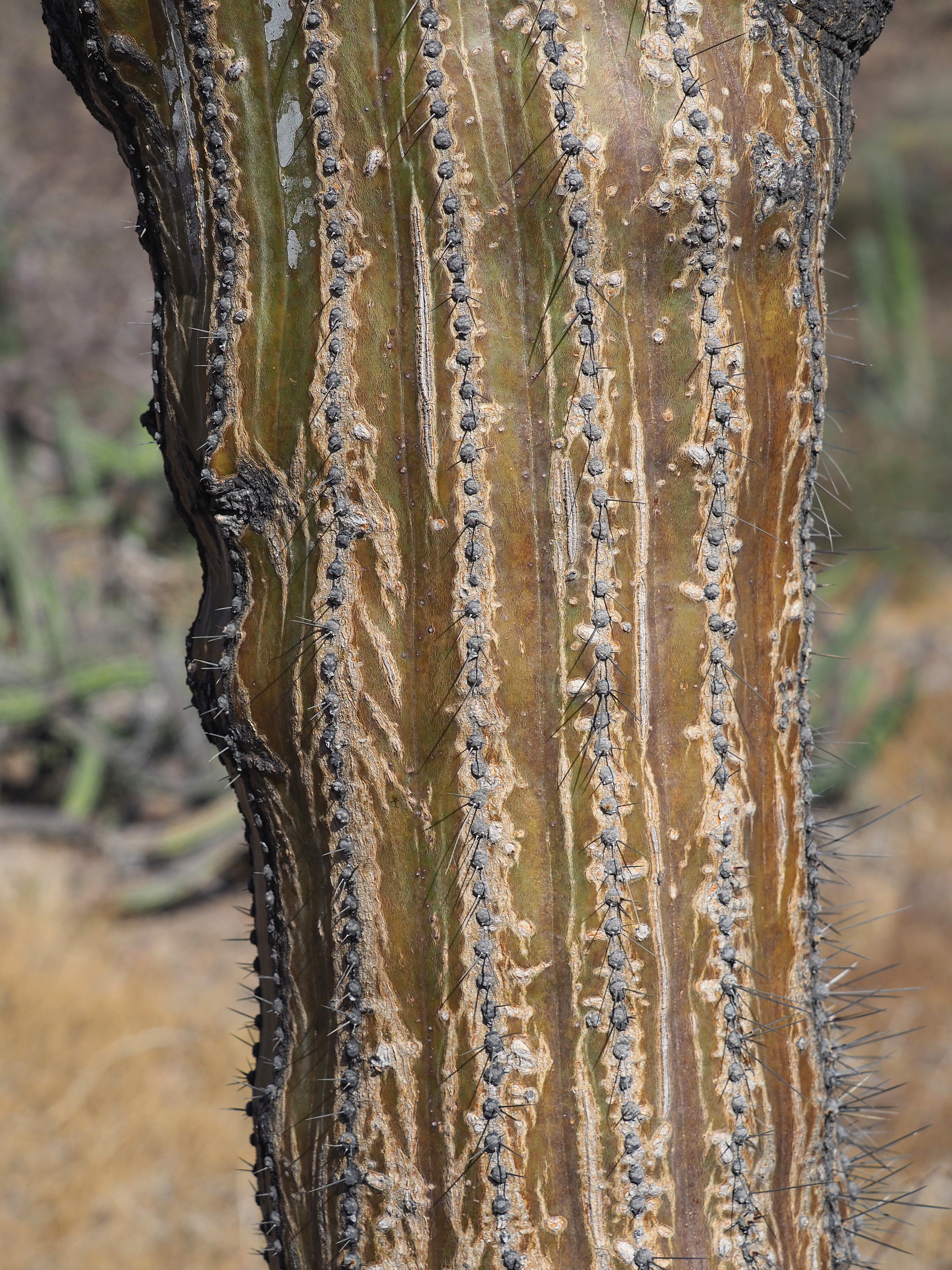 Trunk of the Cardon (Pachycereus pringlei) show few spines with age – typical of many large cacti. ← Previous Next → Trunk of the Cardon (Pachycereus pringlei) show few spines with age – typical of many large cacti. Like Loading...