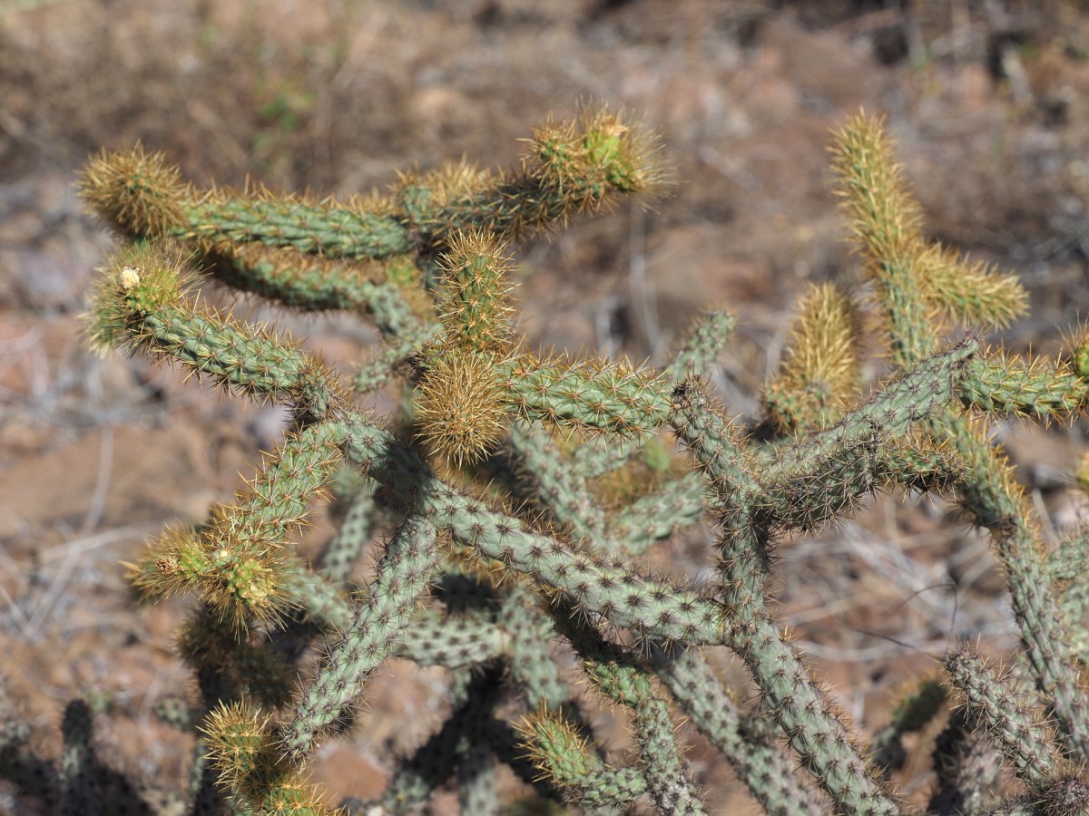 Cylindropuntia alcahes var. burrageana is a vary variable cholla found widely in Baja California. It can look quite different depending on the environment is is found in. This is near Pichilingue.