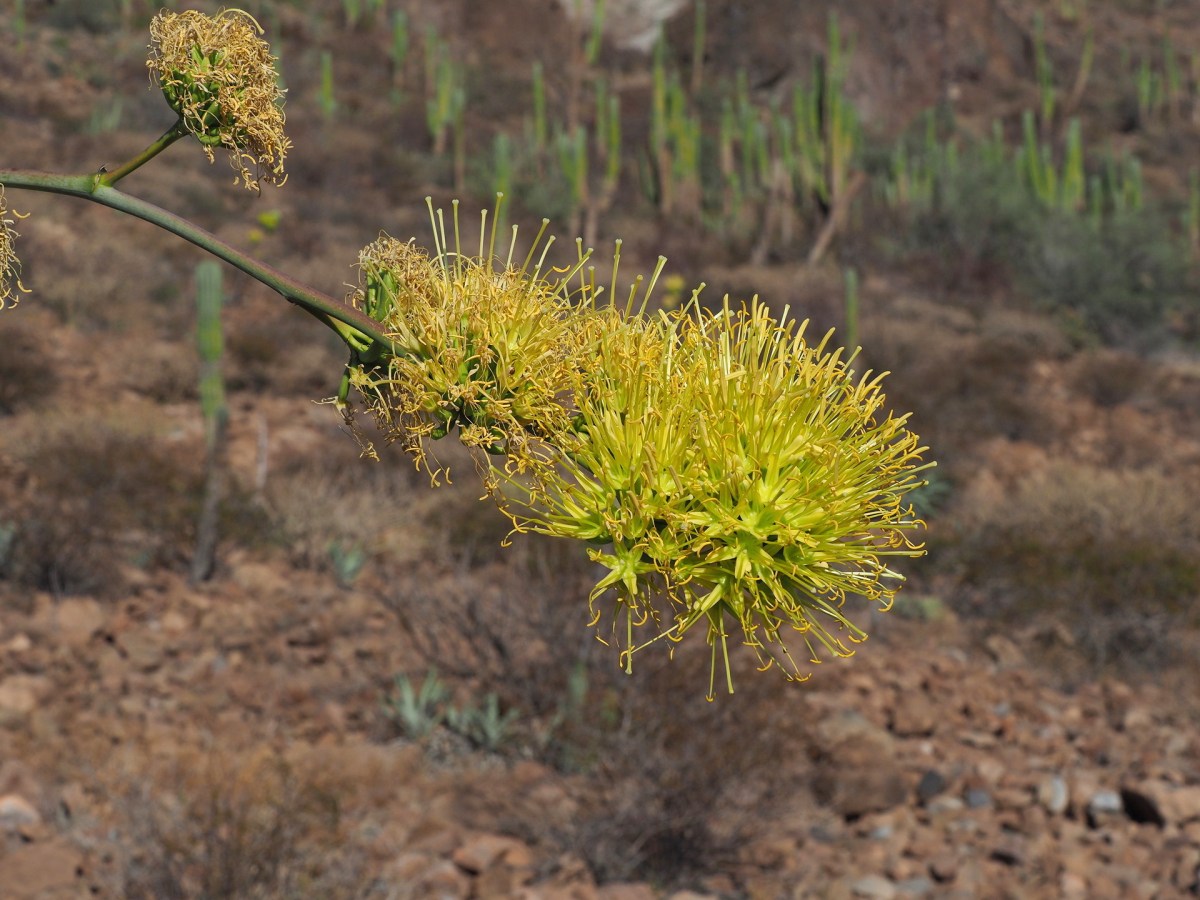 Close-up view of an Agave inflorescence near Pichilingue. According to inaturalist there are 17 Agave species found in Baja California Sur, so I won’t give a definitive species here.