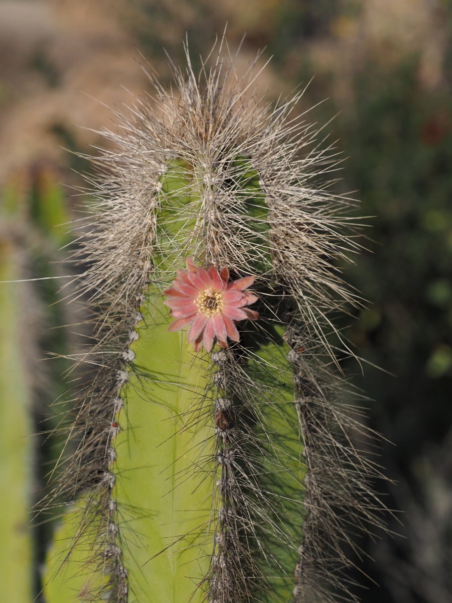 Senita showing flower in early morning at the spine concentration at the top of the stem. ← Previous Next → Senita showing flower in early morning at the spine concentration at the top of the stem. Like Loading...