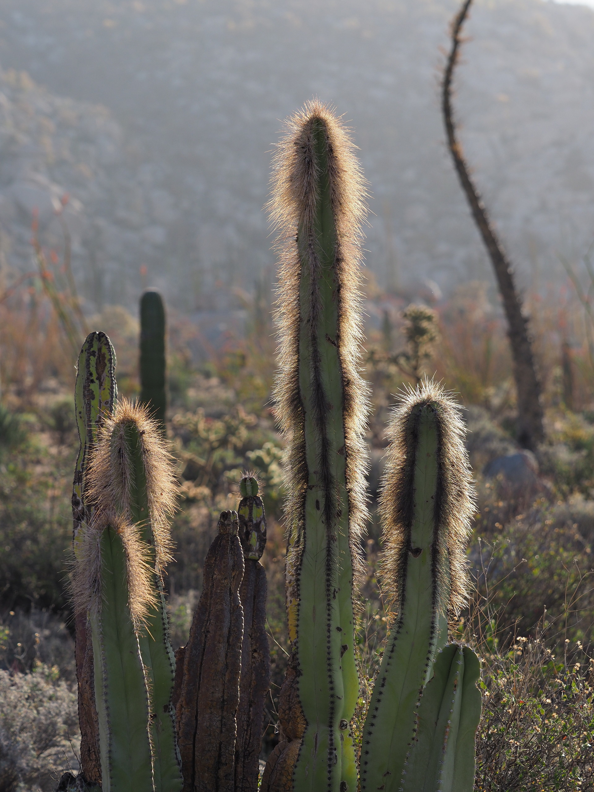 Upper stems of a Senita (Lophocereus schottii) near Cataviña. ← Previous Next → Upper stems of a Senita (Lophocereus schottii) near Cataviña. Like Loading...
