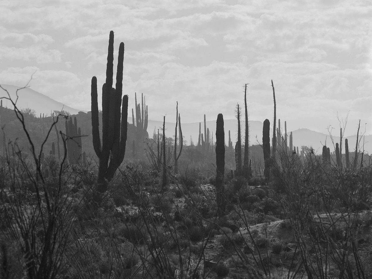 The landscape around Cataviña is great for landscape photography with an emphasis on some of the plants. Here is an early morning near-silhouette grayscale image. Such an image emphasizes the forms of the plants.