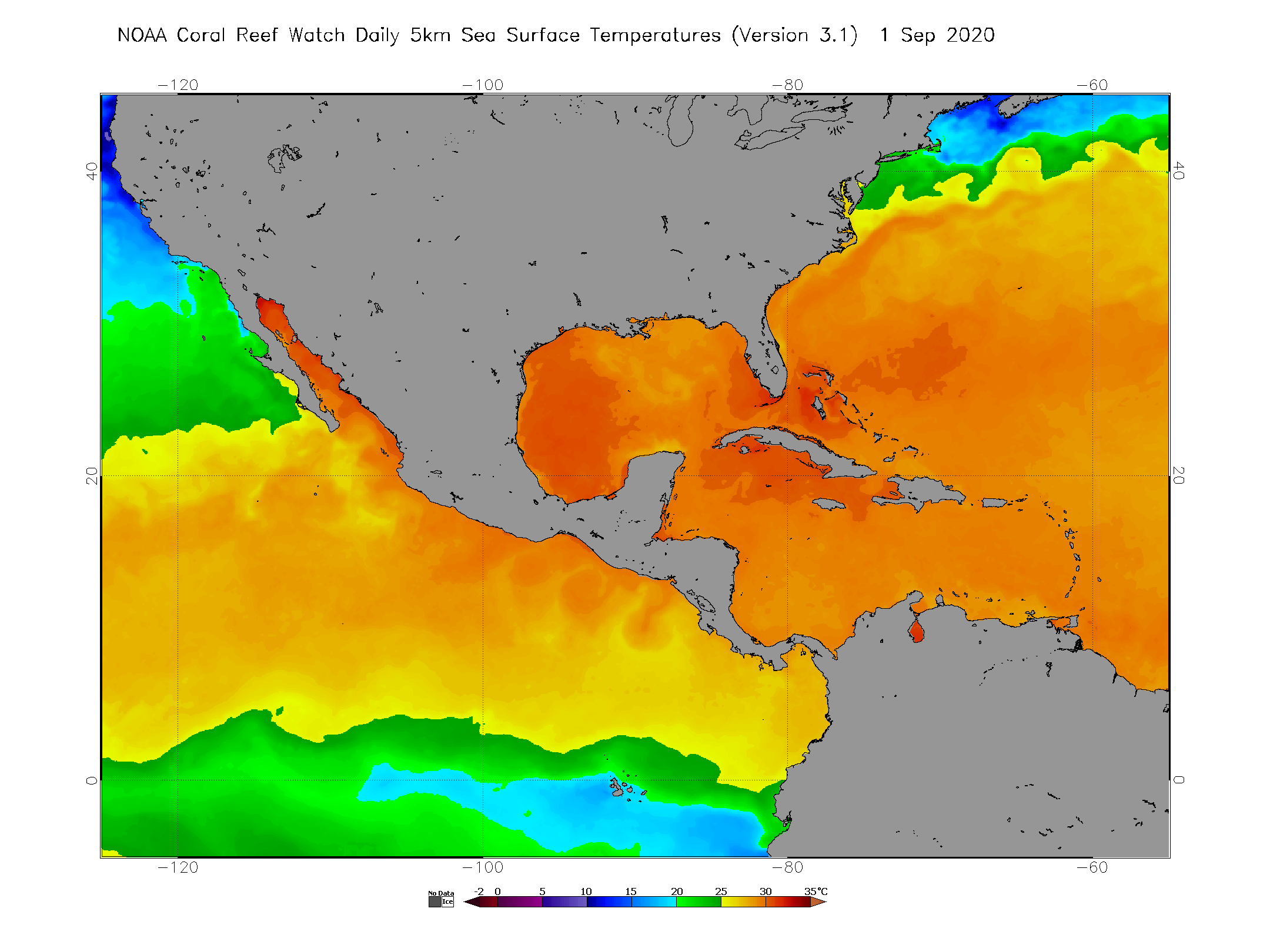 Summer early afternoon cloudiness around 1:30 PM over northwestern Mexico during the May-Oct period for a 7 year period. White indicates least cloudiness while red is the highest cloudiness amount. Details of the procedure used to generate these climatologies can be found here.