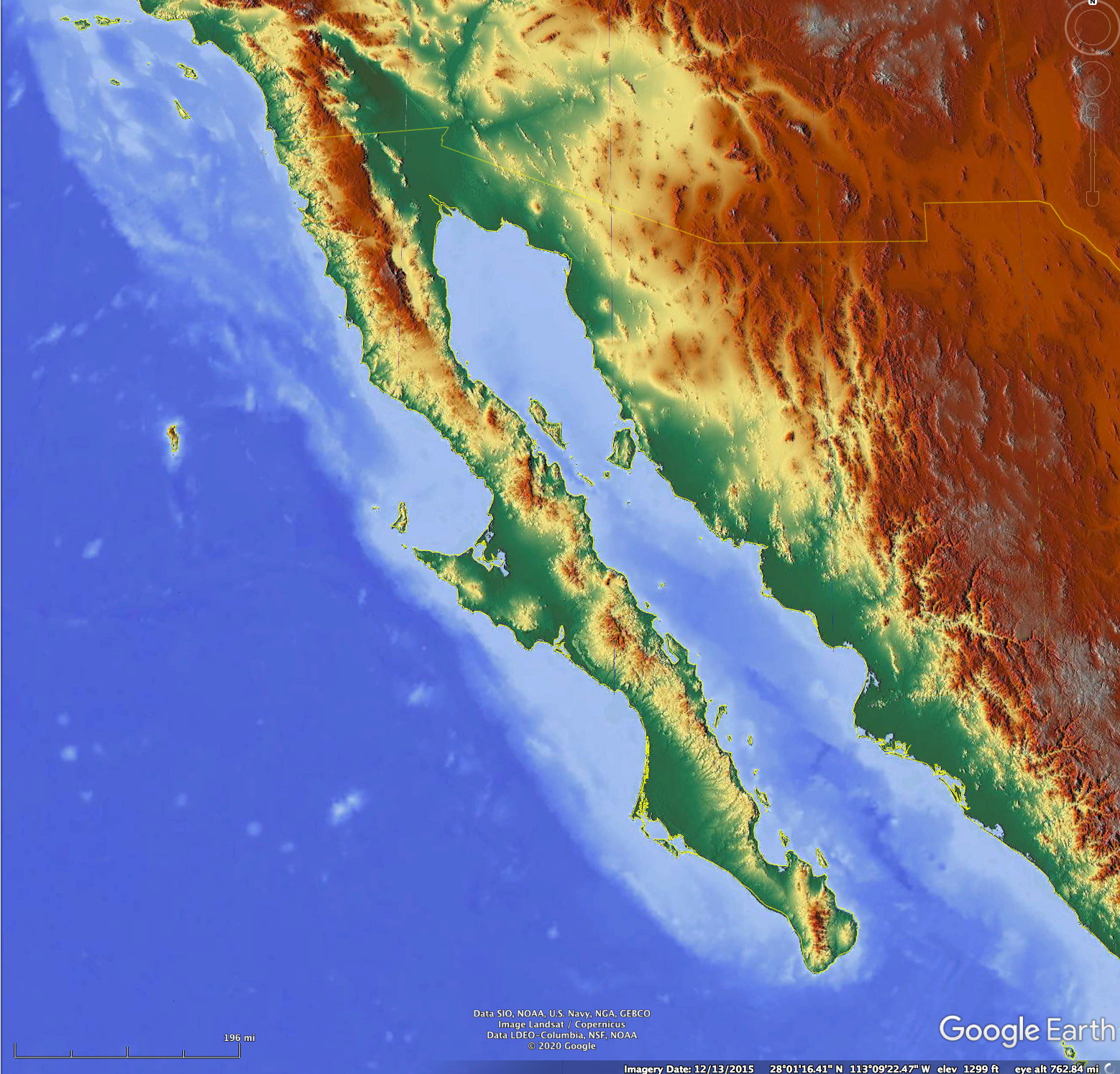 Baja California’s climate is controlled by its position relative to the large-scale aspects of the global circulation. It sits in an area of generally subsiding air, which at the surface appear as subtropical high pressure areas. Then the coastline’s orientation relative to the prevailing winds results in upwelling of colder ocean water along the coastline, with the result that there are strong onshore winds much of the year – especially during the afternoon when the sea-breeze enhances the mean northwesterly winds around the North Pacific subtropical high.