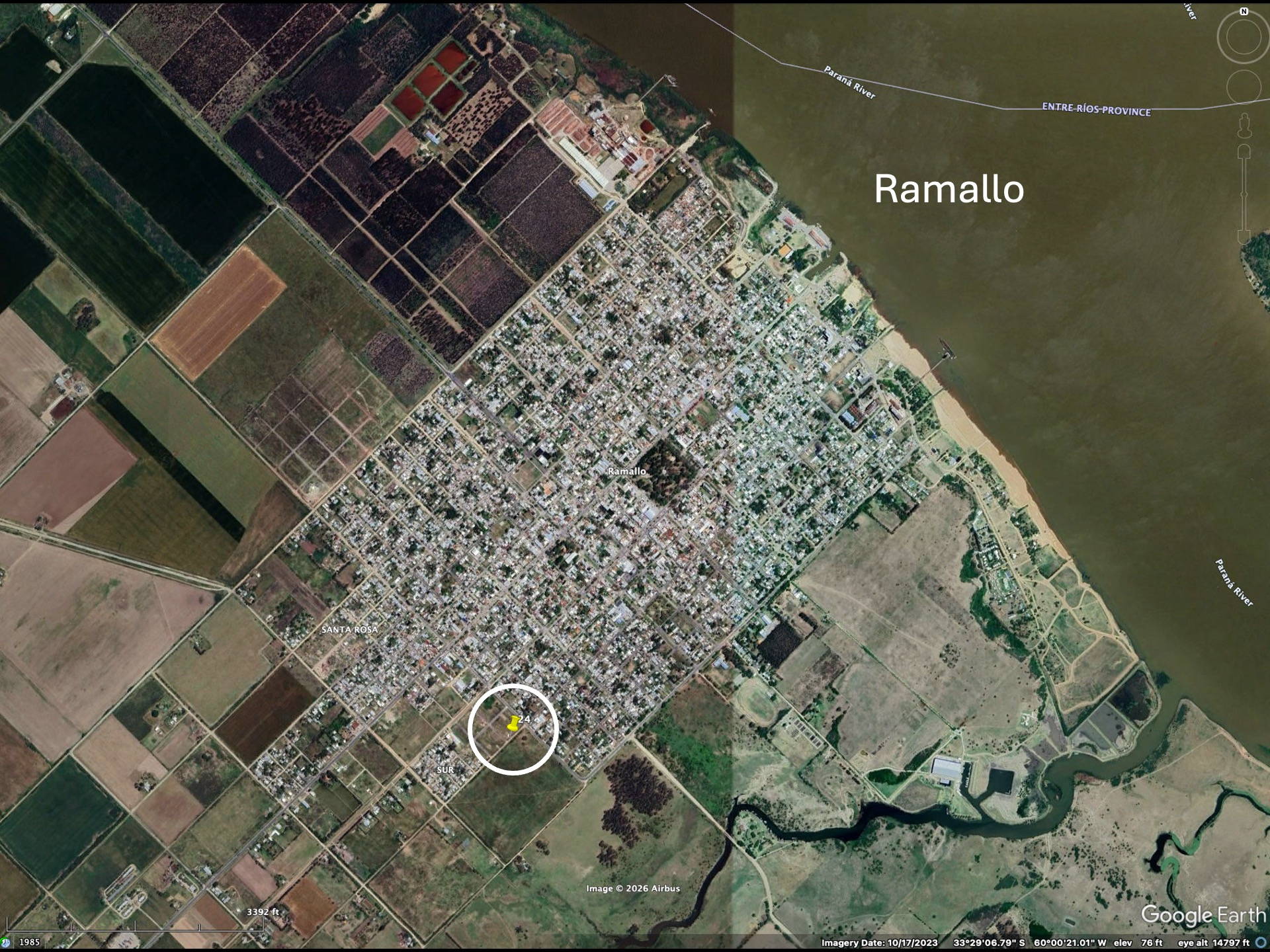 We spent two nights on the road before returning in the morning to Buenos Aires (by 11 AM to return our rental vehicle). The first night was in the farming community of Oncativo – where we had identified an apartment as part of a home that might be suitable for insect photography. Also the location made for tolerable driving distances on our return from San Marcos Sierra. The second night was in the town of Ramallo, on the Parana River, about 125 miles northwest of Buenos Aires.
