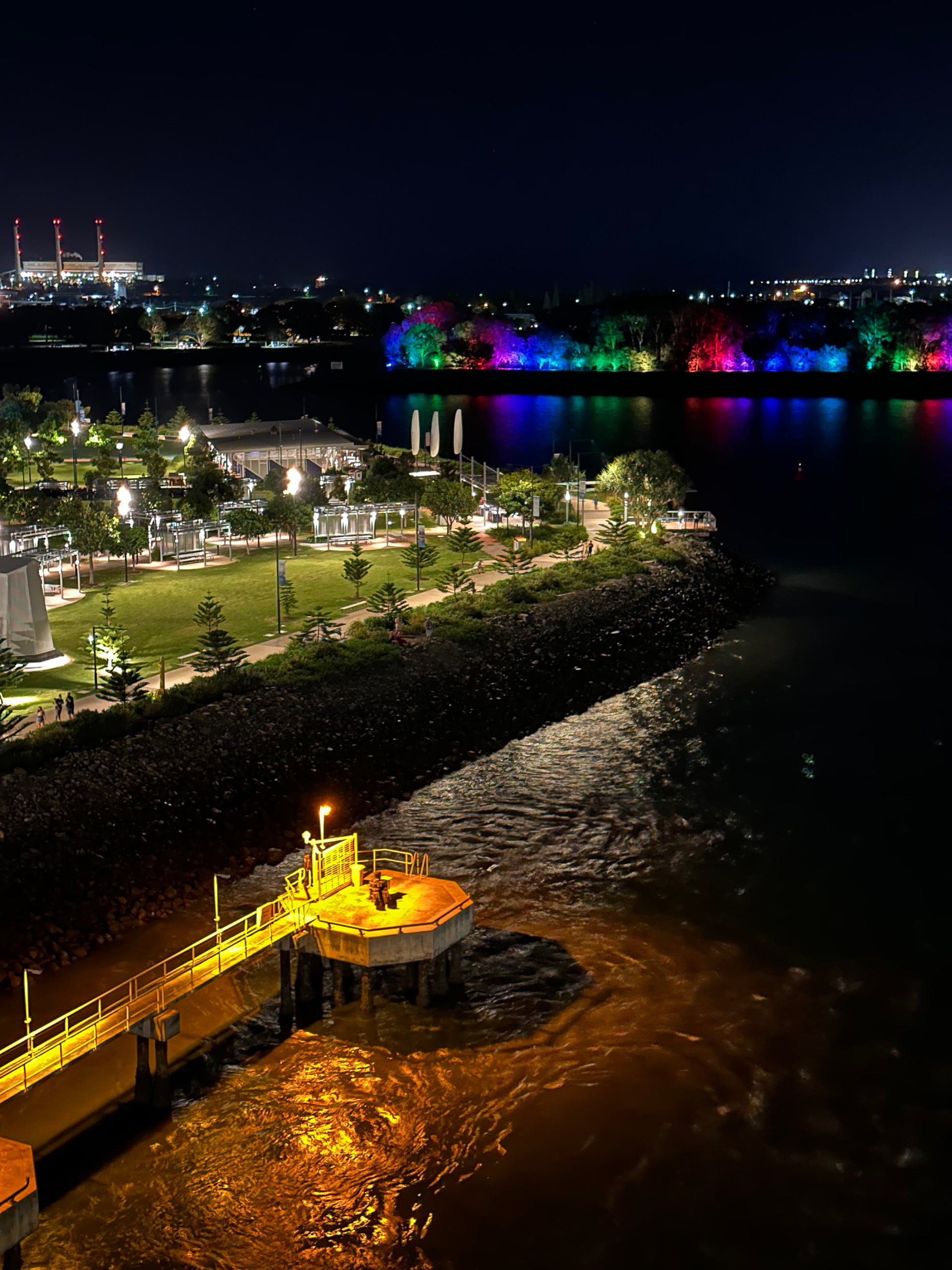 After a relatively full day with plenty of activities to keep us entertained we boarded the ship and soon it was time for the Noordam to set sail again. Gladstone looked very pretty with the lights illuminating it as we moved away.