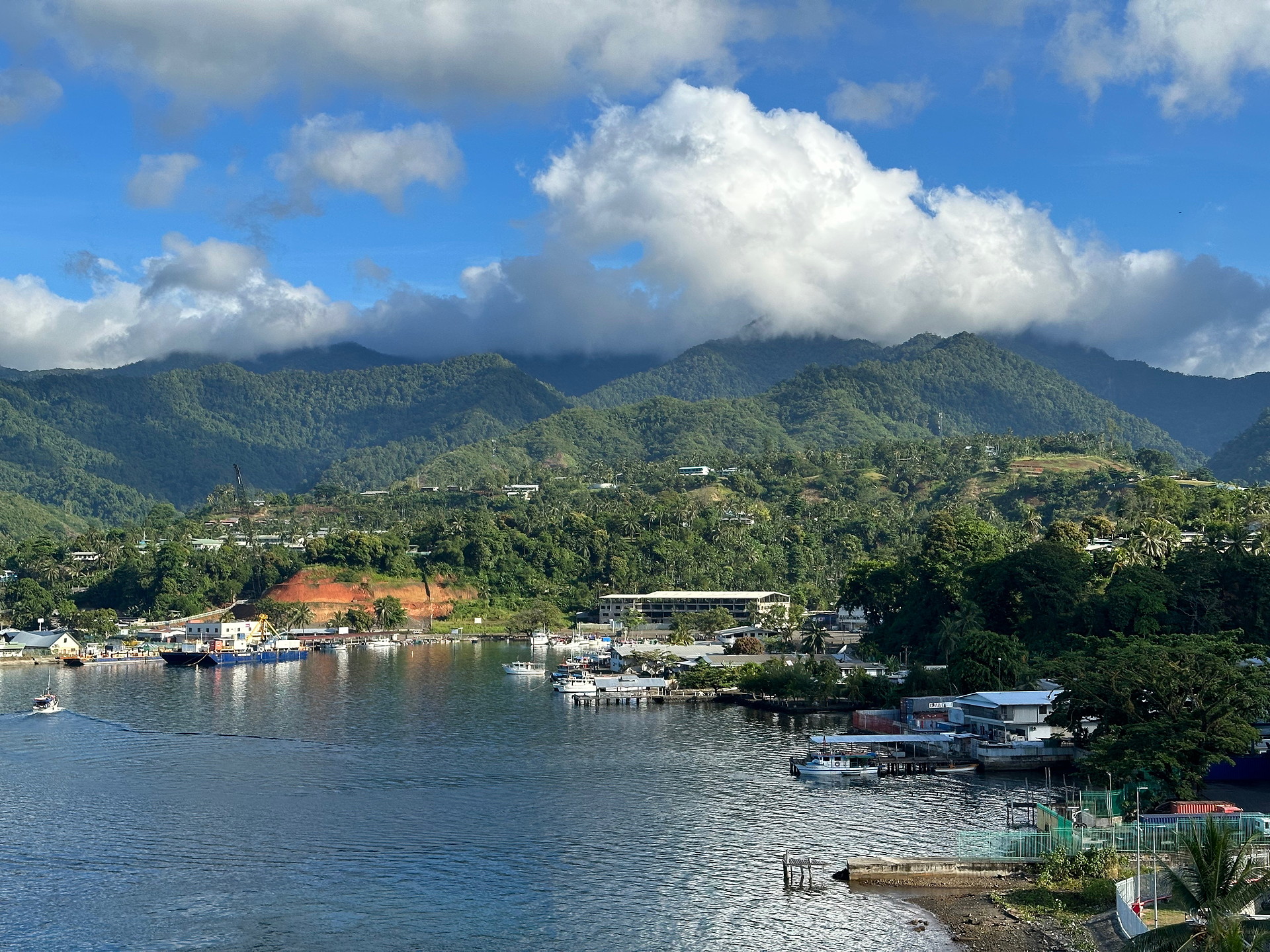 As we got closer we were able to se the town and the beautiful mountains covered in greenery. Eventually we got to the port and the ship docked. A local group greeted our ship with welcome dances.