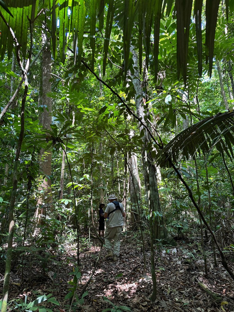 The vegetation was lush in places and we noticed that palms were a prominent part of the vegetation. Many of the palms we saw had thorny stems. Ferns were also abundant in the canopy understory. Most of the birds we saw were new for us and most of them would have been hard to see without the the help of our expert birder guide. Colorful fruit doves were often high in the canopy and they were small and hard to spot.