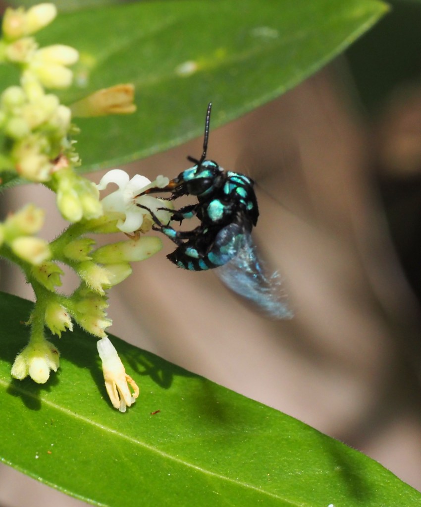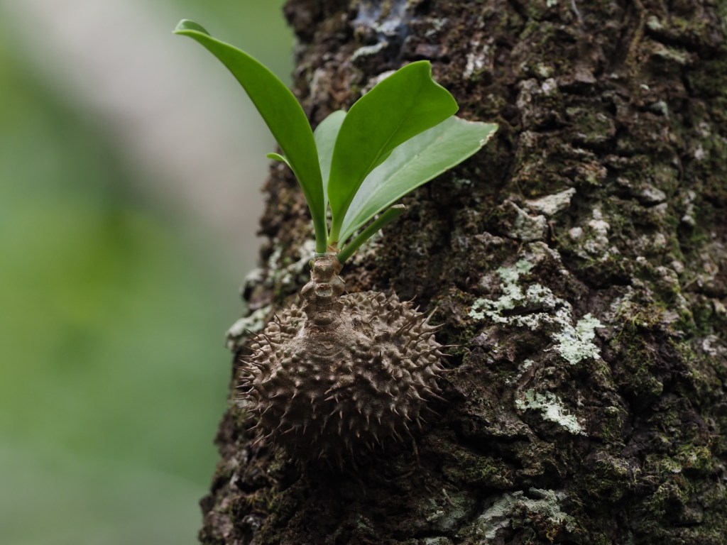 It is quiet once you enter the forest although you can hear the clicking sounds of the numerous crabs, such as the Compressed Fiddler Crab, running along on the muddy floor near the boardwalk. Mudskippers and snails were also at home in the mud. I should mention that at high tide many of the areas with visible mud would disappear under water. Bird songs were also very noticeable especially those calls of the male (dark bird below) and female Shining Flycatchers and the Torresian Kingfisher. Beside the mangroves roots we also noticed the fruits and on a tree along the trail we spotted an ant plant.