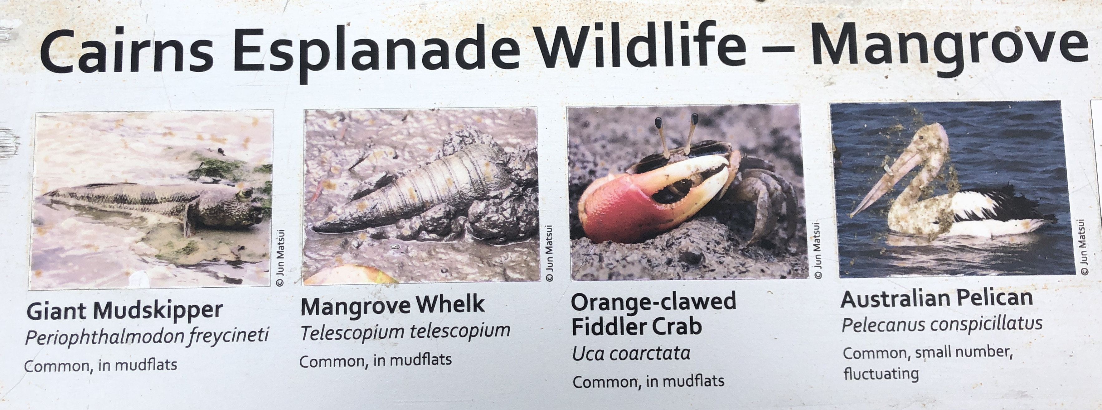 Next stop was the beautiful Jack Barnes Bicentennial mangrove boardwalk near the airport. We discovered this amazing trail through the mangrove forest on our first visit to Australia, but this being our first cruise ship visit was as interesting as the first one. A taxi ride was needed to get from the Esplanade area to the beginning of the mangrove walk. Once there, the trail which consists of a raised boardwalk through different zones of mangrove forest, leads you deeper into the taller forest. Mangroves are shorter at the beginning of the walk, but soon the forest gets taller and shadier. There are some educational plaques to help you learn about this unique ecosystem.