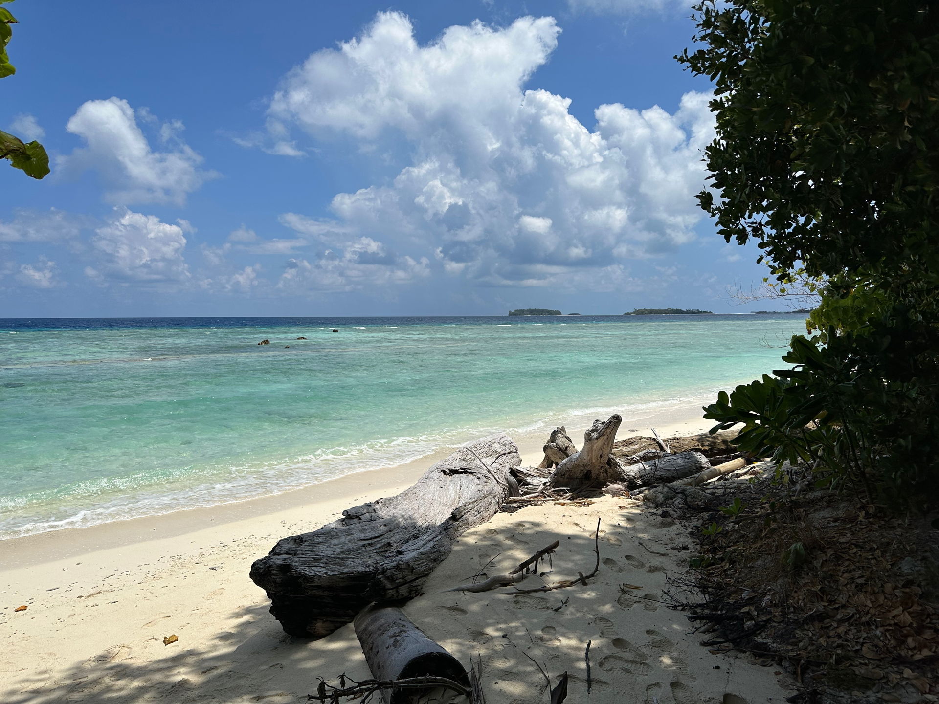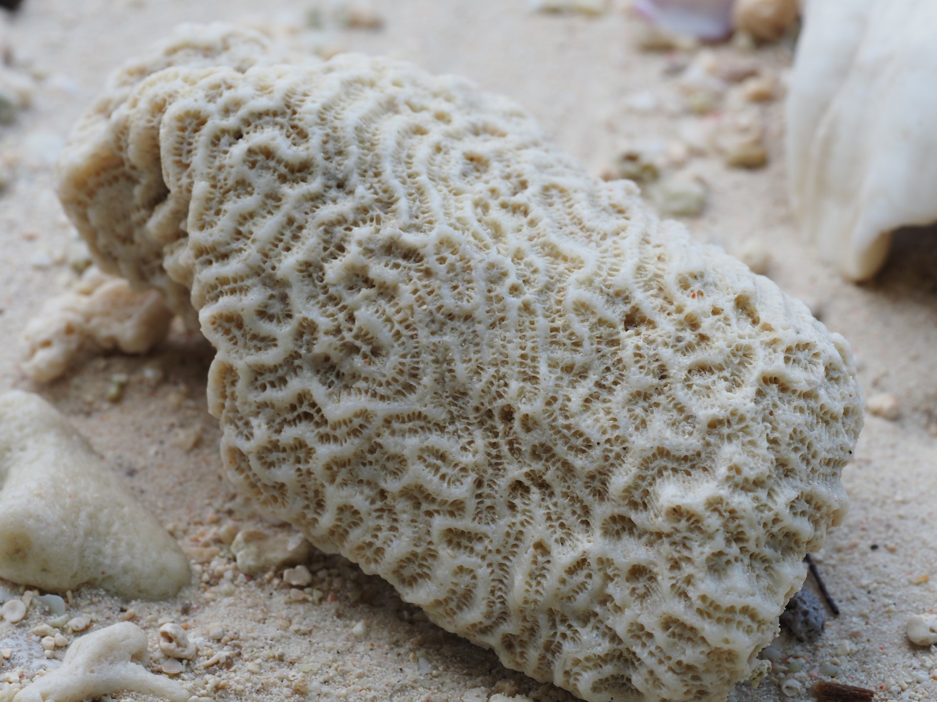 As we continued our walk around the island we periodically got close to the beach to see what was on the sand. We found a fair amount of different coral pieces as well as a variety of shells.