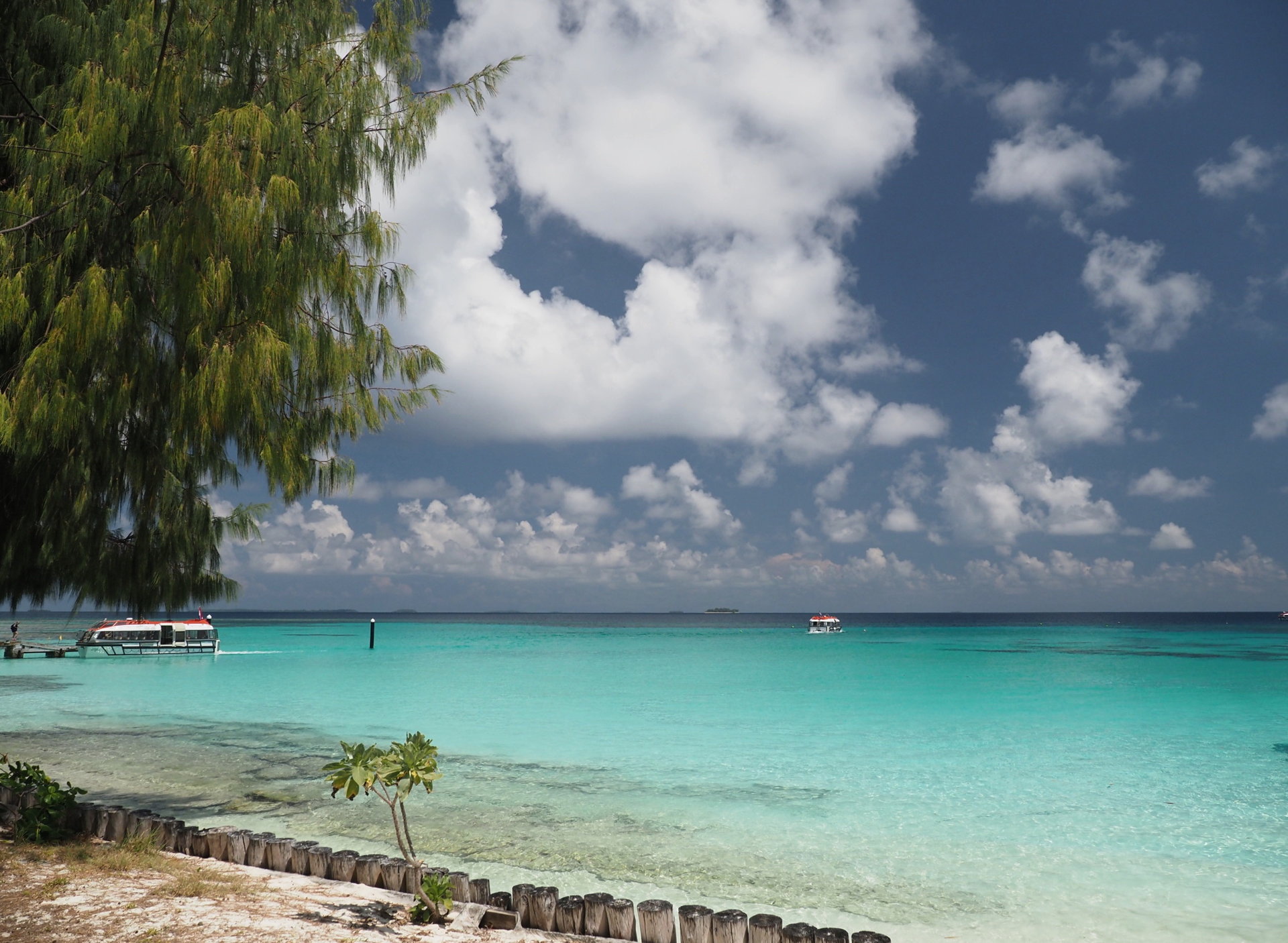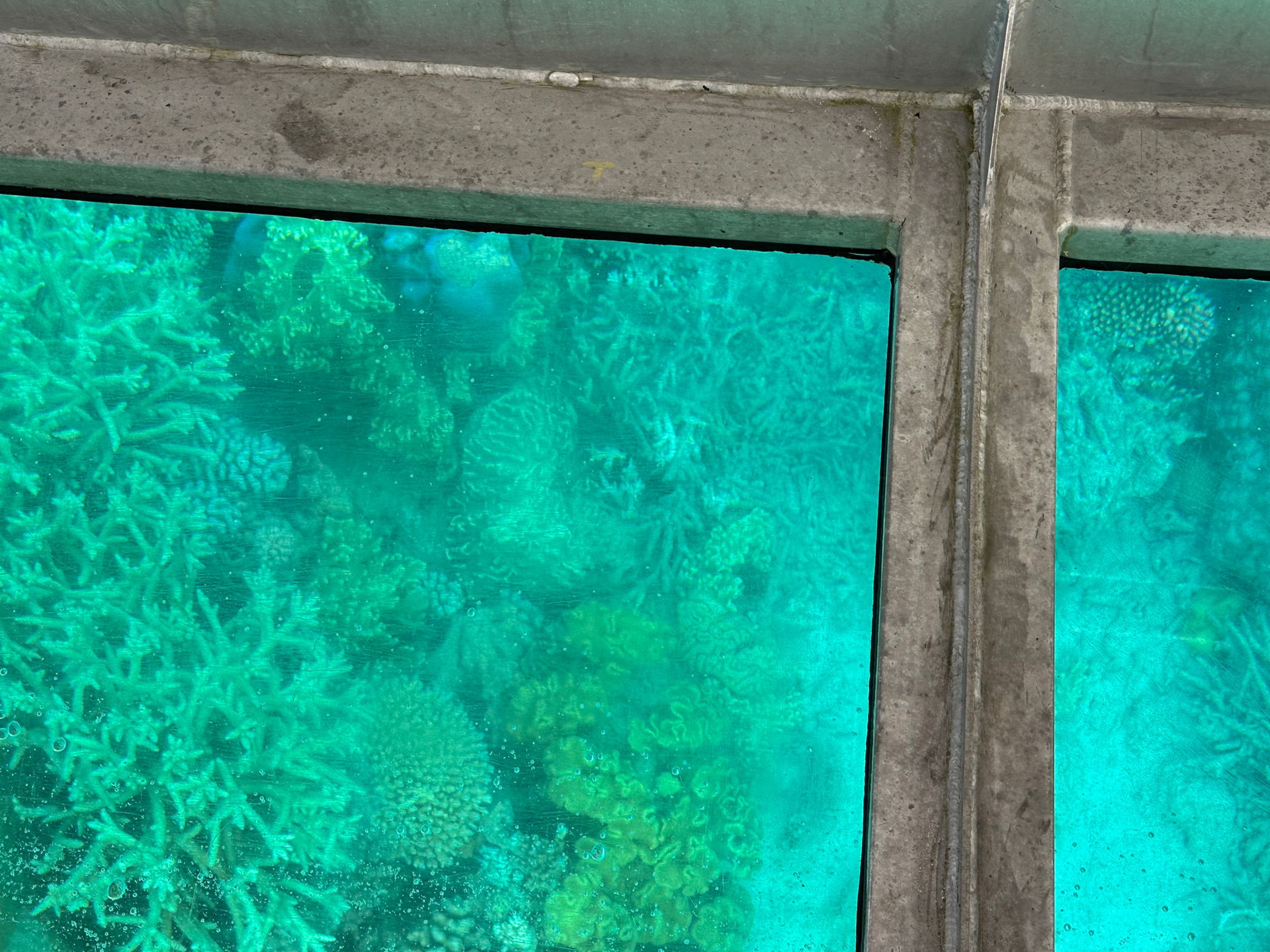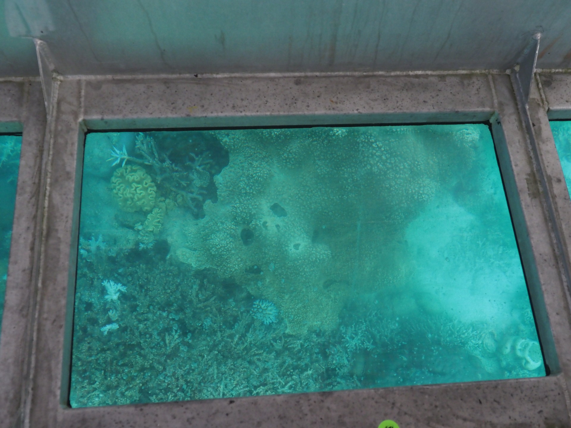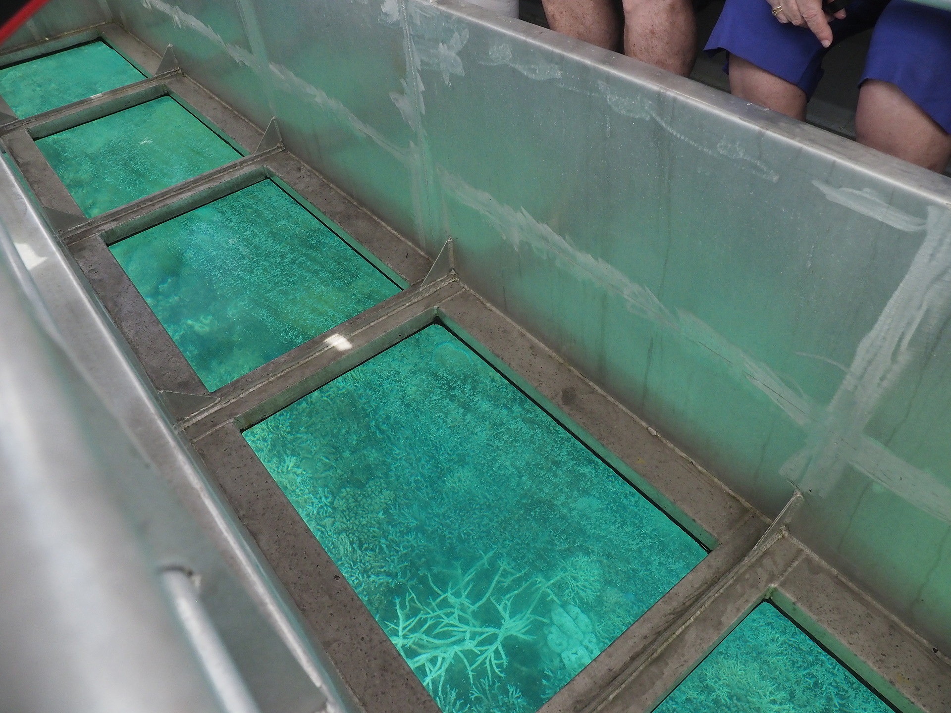 We had arranged to take a glass bottom boat tour of the reefs just offshore. This short tour was mostly to support local conservation efforts on the islands, since the tour was short, and the boat quite modest, but apparently a standard type of plexiglass-bottomed boat built in Australia. Although not the same experience as snorkeling, this tour provided a good introduction to the diversity of corals to be found in this part of the world.