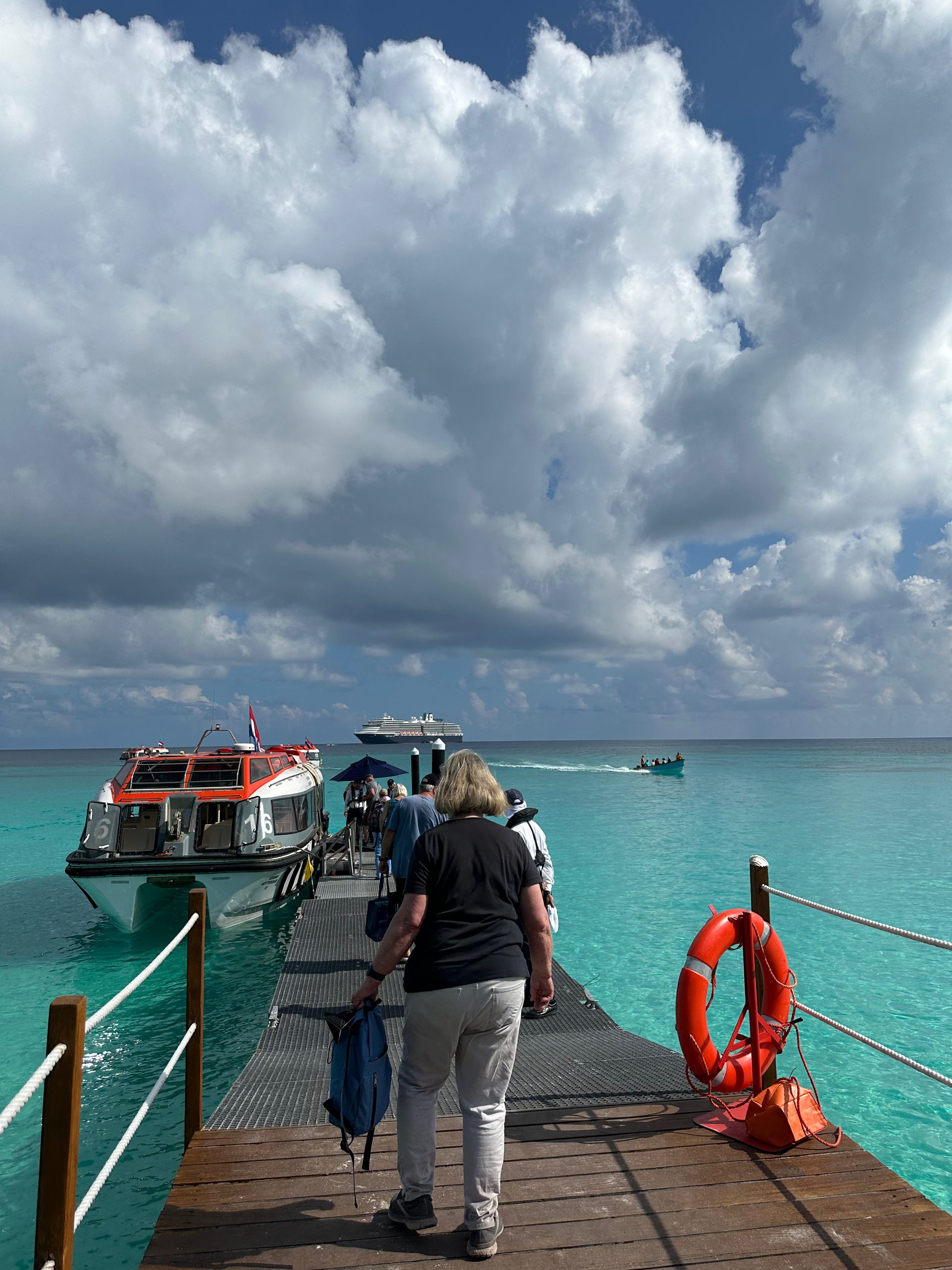 We eventually reached the tender pier and after got on a tender to return to theship.