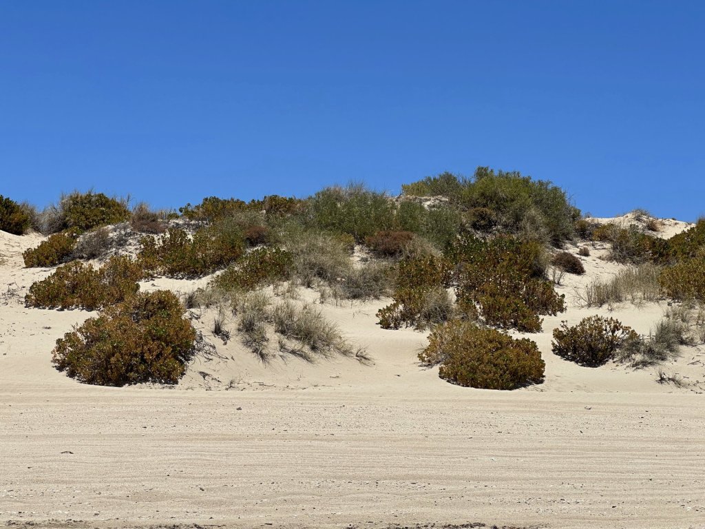 We found out about a trail that takes you through the dunes and eventually to the beach so in spite of the heat(upper 90’s F) and bright sun we decided to walk back to the tender pier rather than take the bus. We looked at the vegetation along the way as well as various birds. We would not recommend this walk if you don’t have much water with you. Not a really difficult walk, it was somewhat tedious due to the heat, but otherwise it was very interesting to walk through the dune vegetation.