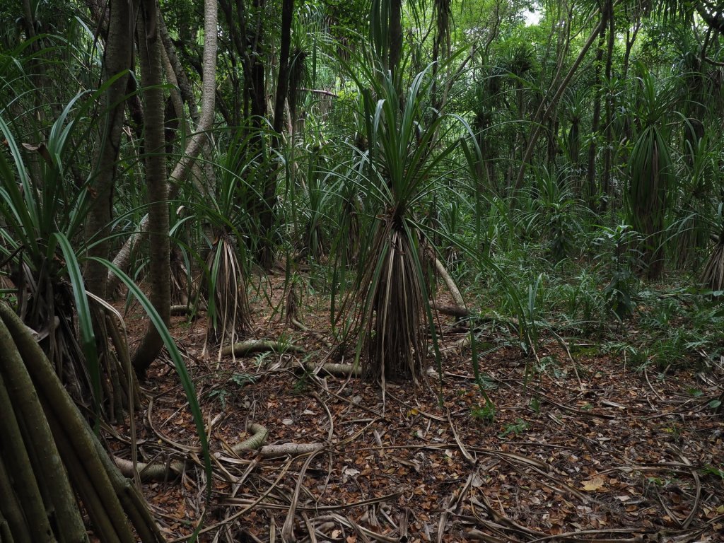 Upon arrival we were surprised by the shade provided by the tall palm-like pandanus which were a dominant plant in the island. Although similar in looks, Pandanus are not related to palms, instead Pandanus is a genus for a group of monocot shrubs and trees native to the Old World. There are over 700 species of Pandanus and the greatest concentration of species is in Madagascar and Malaysia.