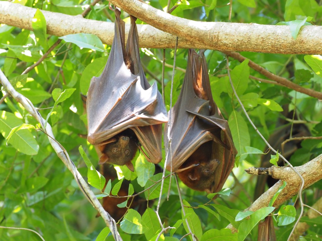 The outside trails do provide opportunities to spot wildlife that inhabit this large park and is not in cages.As we walked some of the trails we spotted some wildlife that was not in a cage or aviary. Some of these included spiders, Flying Foxes (fruit eating bats), lizards, Kangaroos, birds, turtle and mushrooms. Finding the fying foxes was a surprised we came upon as we explore the trails. We could hear them and smell them before we got closer. There were hundreds of these bats hanging from the toll trees near one of the trails.